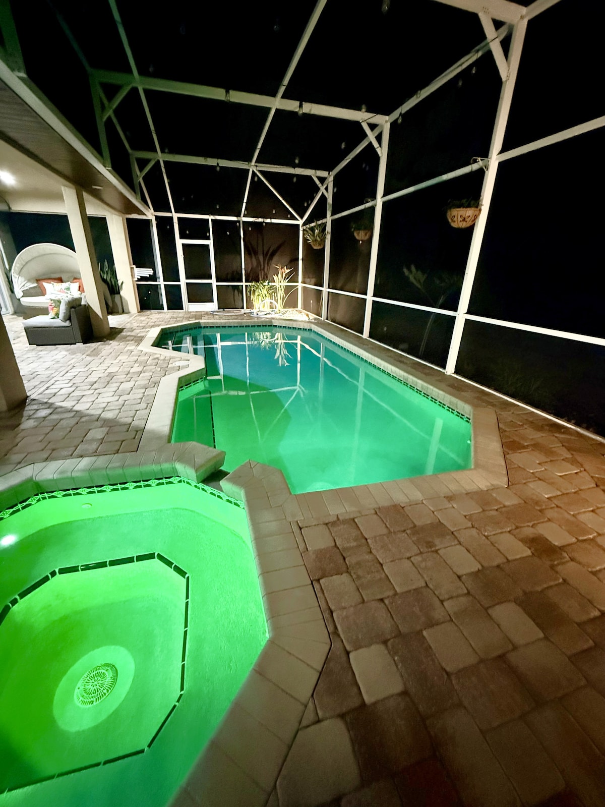 Prostorno bivališče s štirimi spalnicami in dvema kopalnicama, ki se nahaja na priročni lokaciji v bližini Disneyja in Universal Studiosa. Uživajte v obsežnem bazenu, obrnjenem proti jugu, in ograjenem dvorišču za popolno zasebnost. Zabavajte se v čudoviti igralnici, ki je kot nalašč za družinsko zabavo. Brez skrbi z non stop nadzorom varnostnih kamer, nameščenih zunaj namestitve. Poleg tega je mogoče bazen ogrevati na zahtevo za dodaten strošek - obrnite se na trenutne cene.