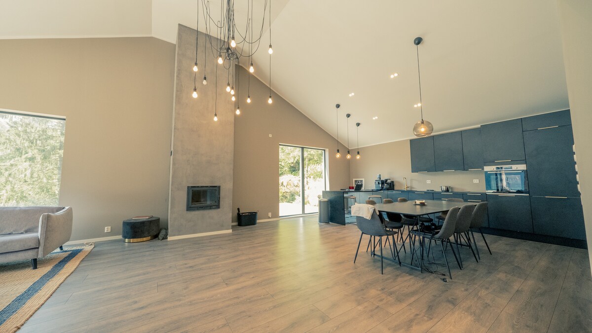 320 m2 kabina s 5 spalnicami. Ob vznožju fjorda.