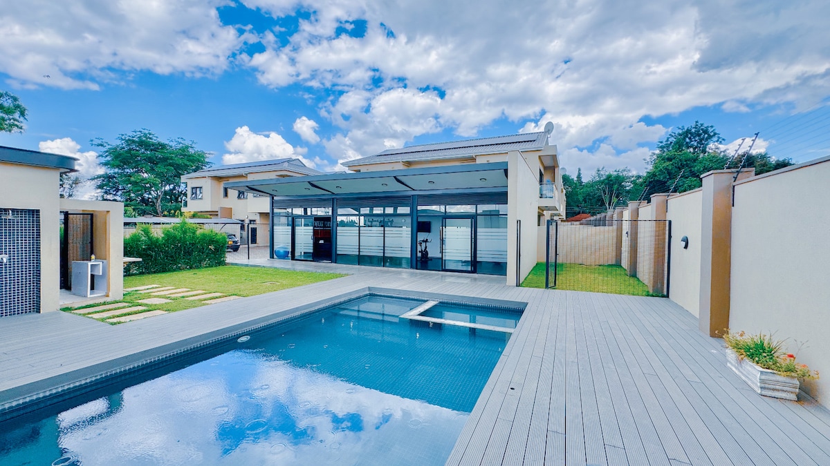 This Four-bedroom, four-bathroom apartment with a pool has been designed for comfort, convenience, and relaxation! Please note that we do not allow events or parties of any sort. Our house is perfect for families, business or similar groups. It is located in a complex of two units and a quiet neighbourhood so noise is not tolerated. With space for eight guests, this modern home has everything you'll need. Enjoy world-class restaurants in Borrowdale , or head to the new Highland Park Mall.