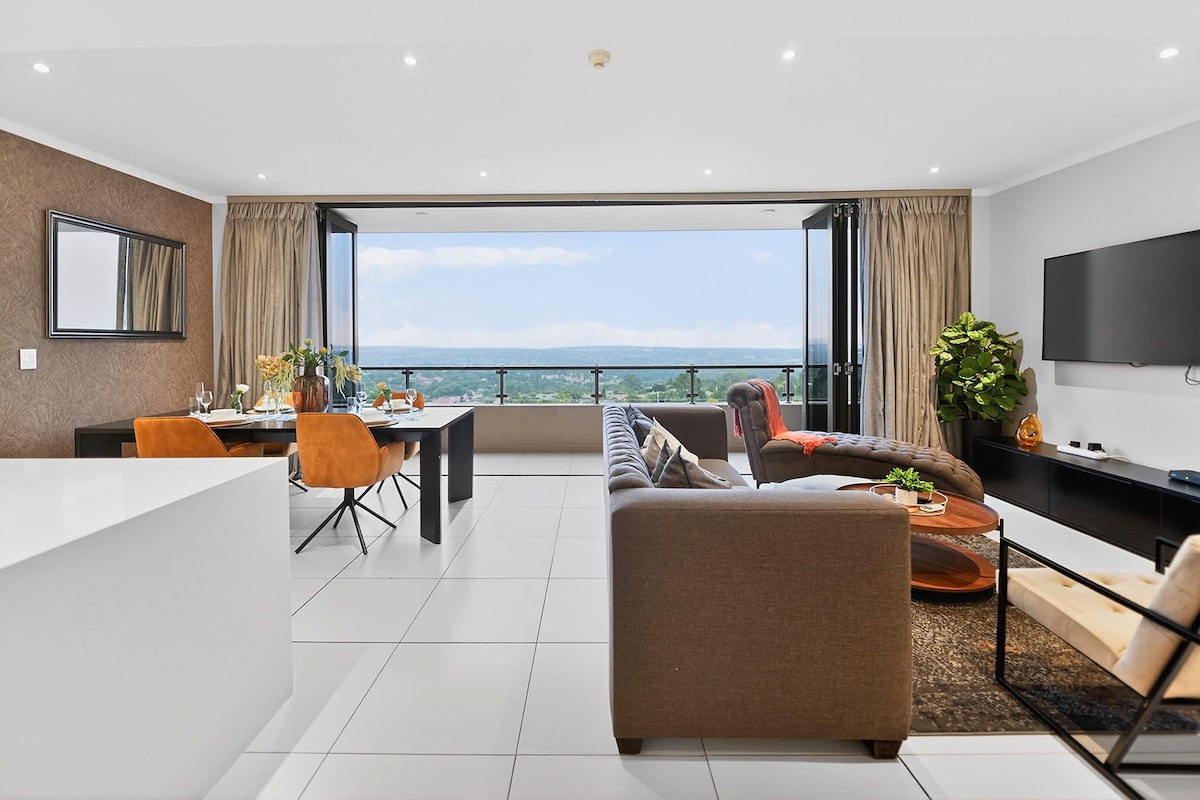 Dobrodošli v velikem, prostornem in sodobnem oblikovalskem podstrešnem stanovanju v osrčju Sandton CBD v Johannesburgu. To elegantno prenočišče ima odprto postavitev, razkošno pohištvo in okna od tal do stropa, ki ponujajo osupljiv razgled na mesto. Uživajte v popolnoma opremljeni kuhinji, elegantnih bivalnih prostorih in zasebnih balkonih. Nahaja se v bližini vrhunskih restavracij, trgovin in zabave ter je popoln mestni oddih za poslovne ali prostočasne popotnike.