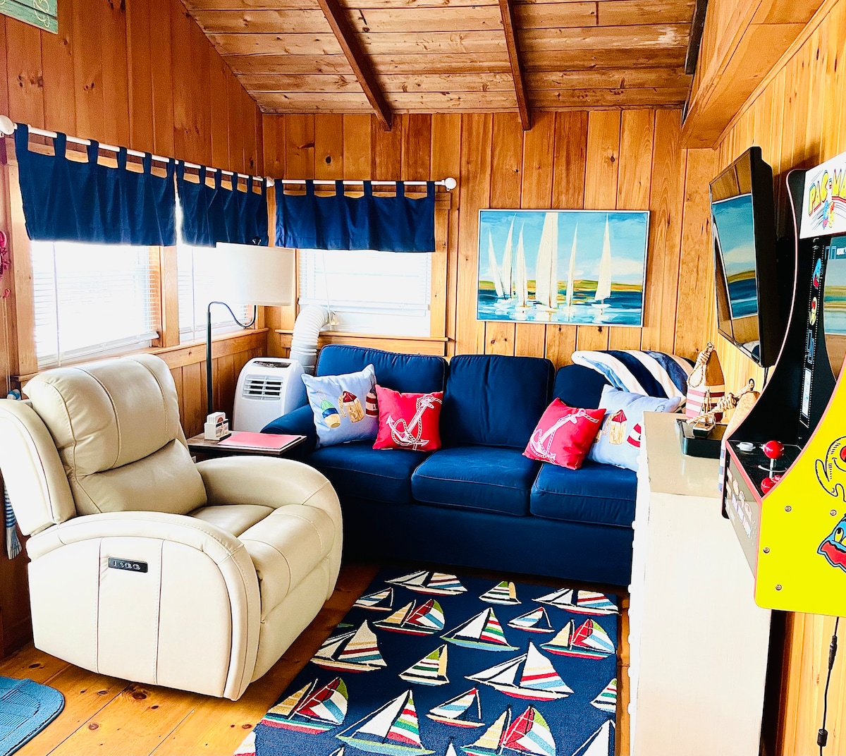Dobrodošli v prenočišču Bayside Retreat! Uživajte v resničnem Cape Codu v tej izjemni nastanitvi na plaži, ki vključuje: zasebno masažno kad, zunanjo teraso in kavč na mirnem dvorišču 🕊️ 2️¥ Kajaki - zunanja prha - plinski žar 🔥 Notranji plinski kamin ❄️ Mini Splits ✔️Games ✔️Pralni/sušilni stroj 📺 55-palčni televizor Sony z aplikacijami in storitvijo DirectTV 🛋️ Udobno pohištvo➕Opremljena kuhinja 🛁Nova kopalnica 🕊️Sprostite se v miru in zasebnosti na dvorišču ali pa se podajte na raziskovanje! 📍 Nahaja se v središču mesta ❌BREZ STROŠKOV ⛱️ Letne počitnice na plaži ➡️Bayside_Retreat_Capecod