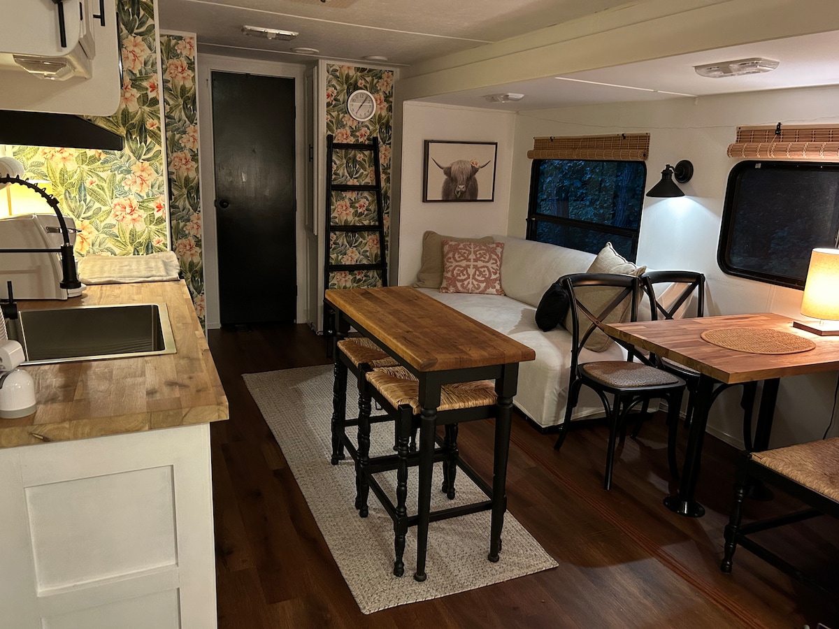 Get away from it all, unplug (if you want to) and enjoy some happy glamping. Located in a quiet rural area surrounded by woods and nature.