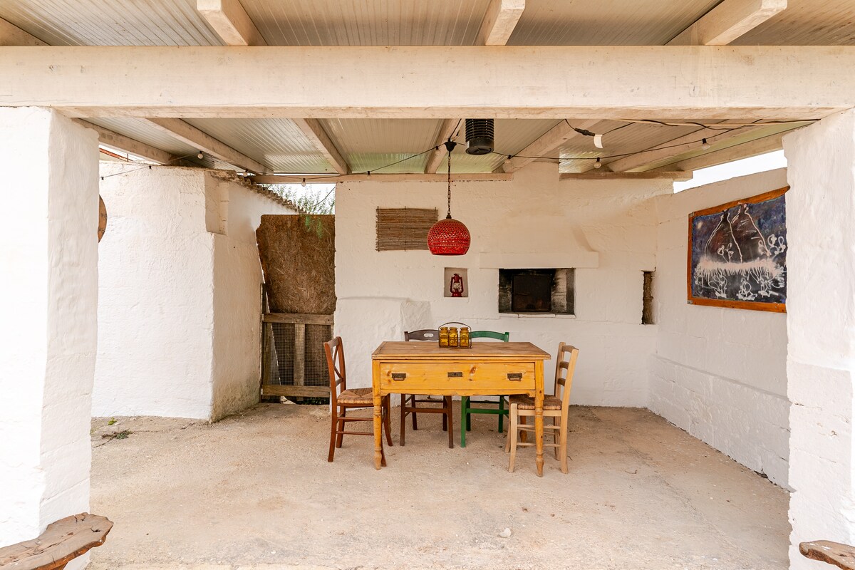 Ta edinstven prostor, izklesan v tradicionalnih kamnitih hiškah, ima svoj čar in vam omogoča, da doživite pravi duh doline Itria. Vstopite skozi staro pergolo, okrašeno z jagodami in grozdjem. Kuhinja in kopalnica sta v nišah, jedilnica in spalni prostori pa v saracenski kamniti hiški in kamniti hiški z visokim stožčastim strešnim pokrovom. Zasebna terasa in bližnji neskončni bazen nudita pogled na dolino in obris Ceglie Messapice.
