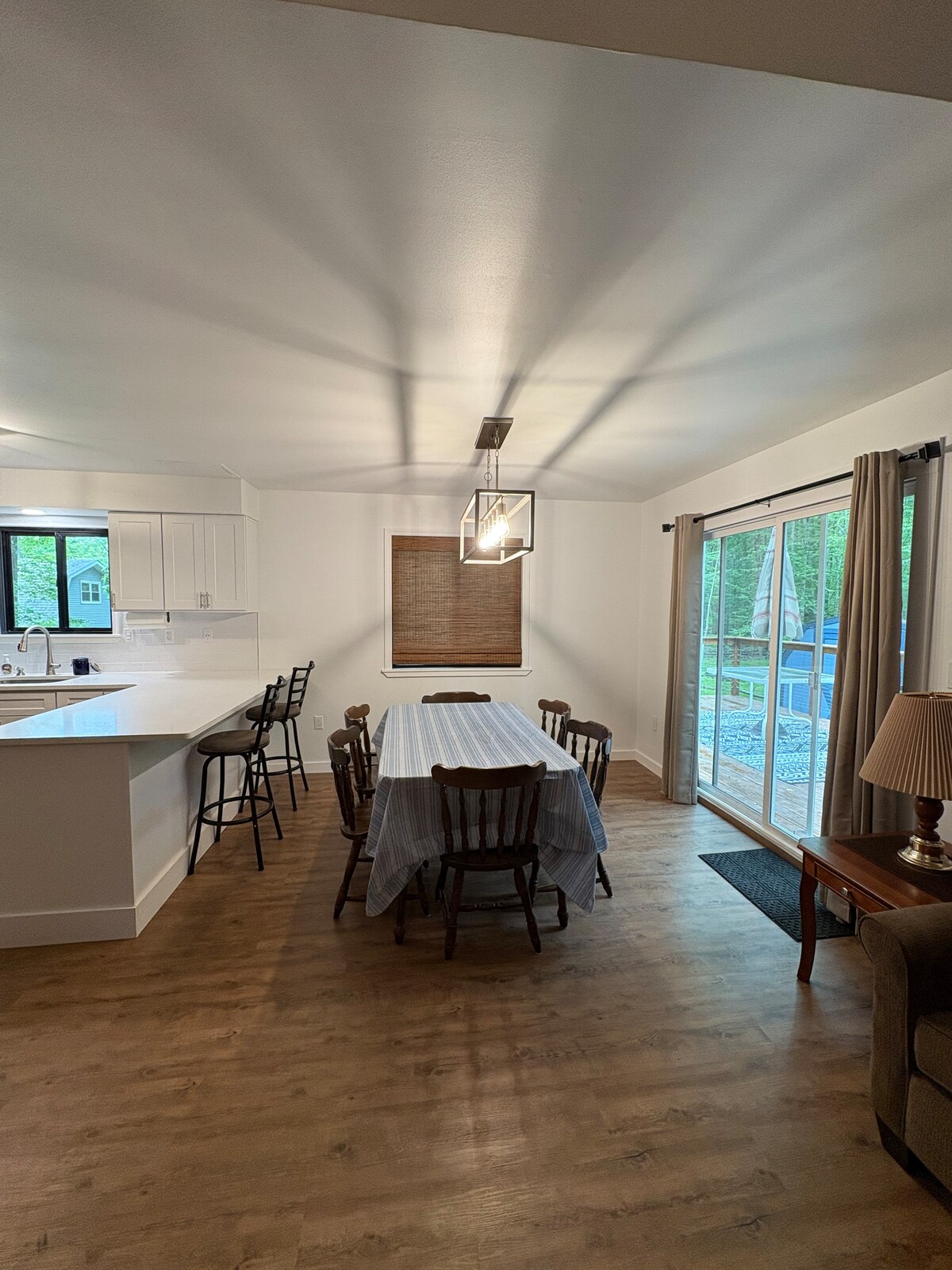 Welcome to Nature’s Peak. A newly renovated two-story private home in the Masthope Ski Big Bear Community. It's perched on a rocky bluff with the Delaware River running below and eagles soaring above. The spacious upper and lower decks will draw you outdoors to a panoramic view of the mountains of Pennsylvania and New York.