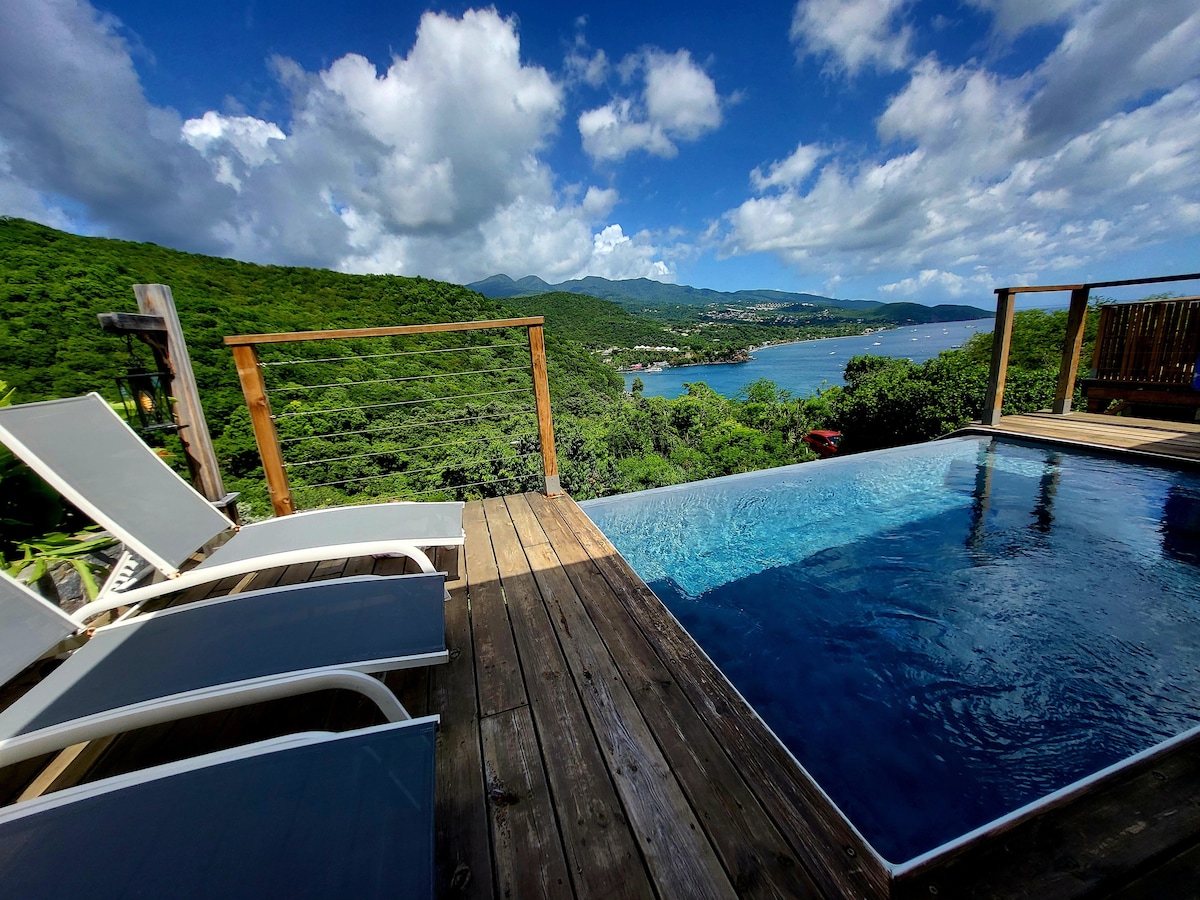 Vila »Modra zvezda«, ki leži na naravnem razgledu s pogledom na Karibsko morje, je ena od štirih izjemnih vil, ki jih ponuja *Blue Haven Villas Guadeloupe* Kapaciteta 6 oseb, 3 a-c BR / 2 BA - ogrevan * bazen in panoramski bazen s koktajli - komarniki na vseh oknih - zunanja prha - pogled na morje in neposreden dostop do ene najlepših lokacij za potapljanje z masko - oprema za potapljanje na dih -zasebno zemljišče in parkirišče -barbecue, Wi-Fi -pični vodni zbiralnik v primeru izpada vode