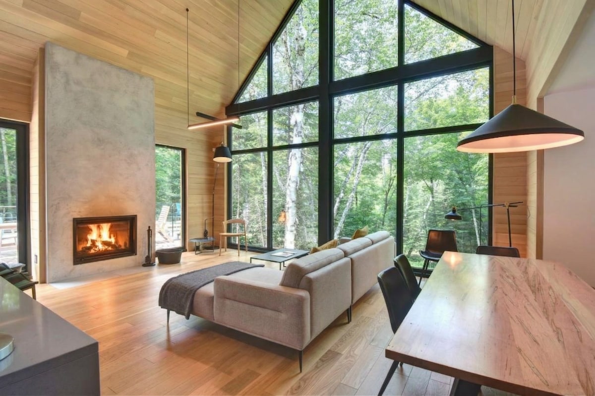 🏡 Švedska, prestižna planinska hiša sredi gozda, 1,5 ure od Montreala. Idealen za romantičen oddih, družino ali na daljavo💻, združuje skandinavsko oblikovanje, udobje in mir. Notranji/zunanji 🔥 kamin za prijetno vzdušje 🛁 SPA in savna za popolno sprostitev Hiter 📶 Wi-Fi in delovni prostor za združevanje produktivnosti in wellnessa Neverjetna 🌿 fustracija za potopitev v naravo Uživajte v jezeru in poteh za nepozabno bivanje.