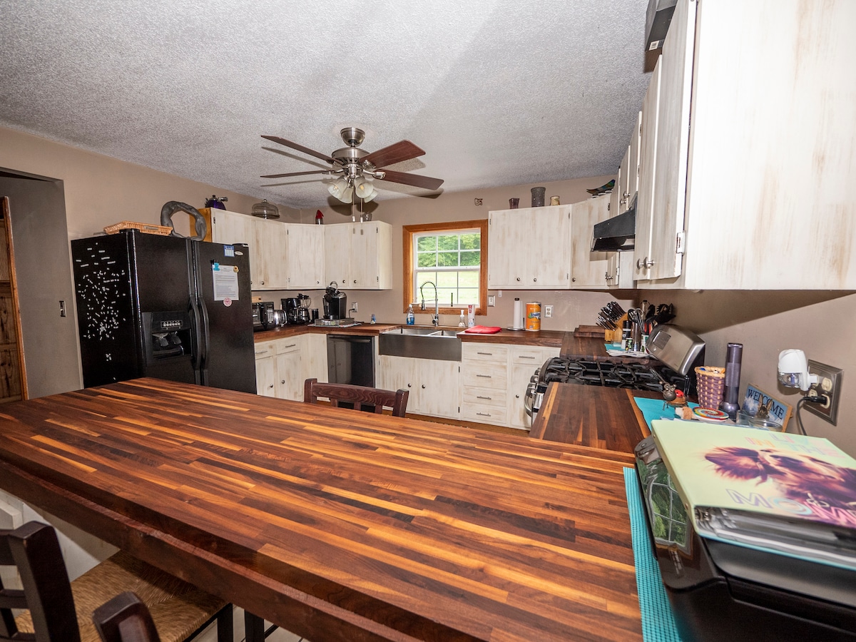 Sprostite se z vso družino v tem mirnem prenočišču. Uživajte v čudovitih sončnih vzhodih, sončnih zahodih in razgledu na gore, ki vas obdajajo. Pijte prvo skodelico kave na prostornem predvajanju na verandi. Prinesite oglje na žar. Uživajte v zunanjem ognju (dobavljamo les). Dobro opremljena kuhinja prosi za uporabo. Raztegljive postelje v omarah. Raztegljiv kavč v odlični sobi. Pralni in sušilni stroj sta vam na voljo za uporabo. Nahajamo se le 10 minut od avtoceste I-77 in I-81. Gostilci živijo v sklopu nastanitve.
