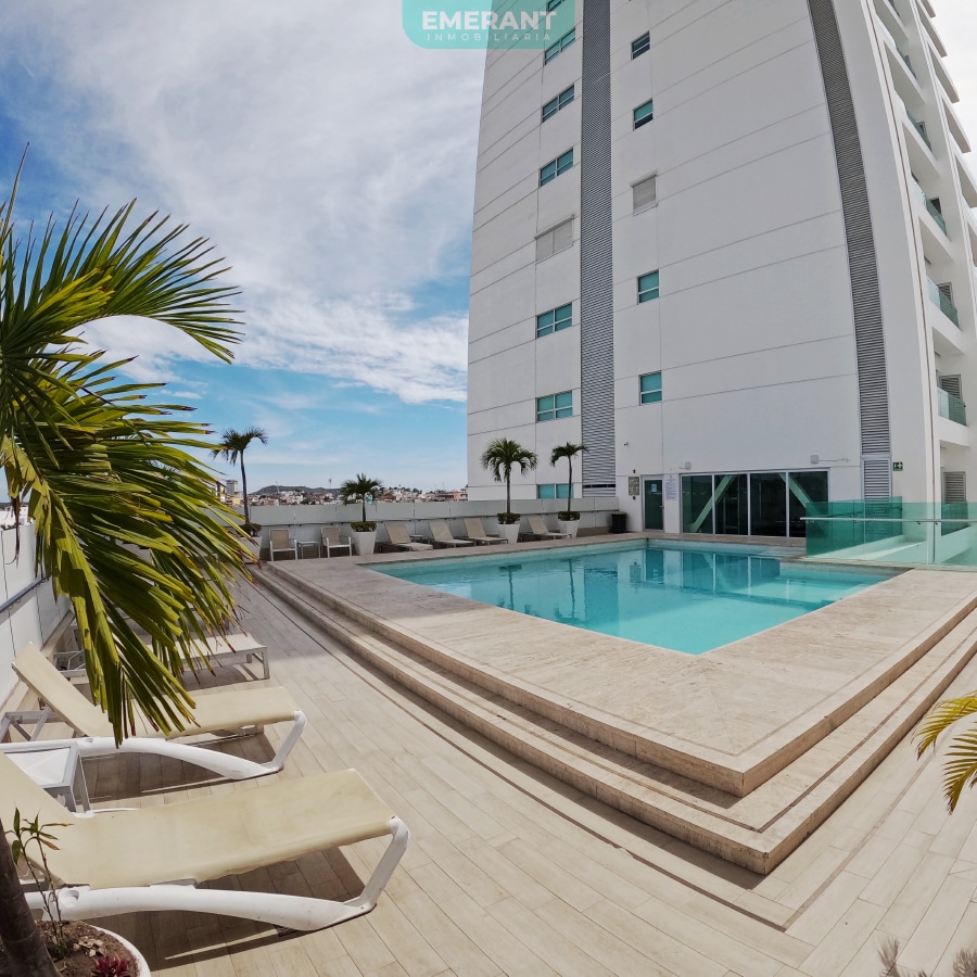 ES UN HERMOSO CONDOMINO CON UNA VISTA PANORAMICA DESDE LA ALBERCA A LA ZONA HOTELERA. UBICADO A 5 CUADRAS DE LA PLAYA Y ZONA TURISTICA DE MAZATLAN DONDE SE ENCUENTRAN LOS MEJORES BARES, RESTAURANTES Y ANTROS, CUENTA CON 2 RECAMARAS AMPLIAS, RECAMARA PRINCIPAL CUENTA CON CAMA KINGSIDE, MINISPLIT, CLOSET Y BAÑO COMPLETO, RECAMARA SECUNDARIA CUENTA CON 2 CAMAS MATRIMONIAL, CLOSET Y MINISPLIT, SALA, COMEDOR, COCINA CON DESAYUNADOR CON LO NECESARIO PARA COCINAR Y 2 BAÑO COMPLETO, ESTACIONAMIENTO
