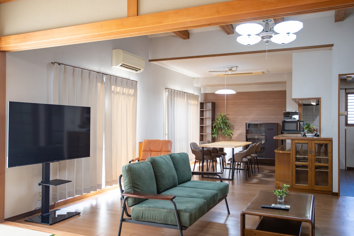 67 m2 1 BR stanovanje. 10 minut hoje do Hirošime Sta. na priročni lokaciji z bližnjimi restavracijami, supermarketi in turističnimi točkami. Stopnice vodijo v 2. nadstropje, zaradi česar je to bivališče prostorno za 11 odraslih oseb. Skupaj z opremo. Kuhinja z indukcijskim ogrevalnim štedilnikom za vaše kuharsko doživetje. Pralni stroj s funkcijo sušilnega stroja. Ločeno stranišče in kopalnica. TV v dnevni sobi. Toaletne potrebščine so na voljo. Vse, kar potrebujete za udobno bivanje. Opomba: čiščenje se opravi enkrat šele po letu
