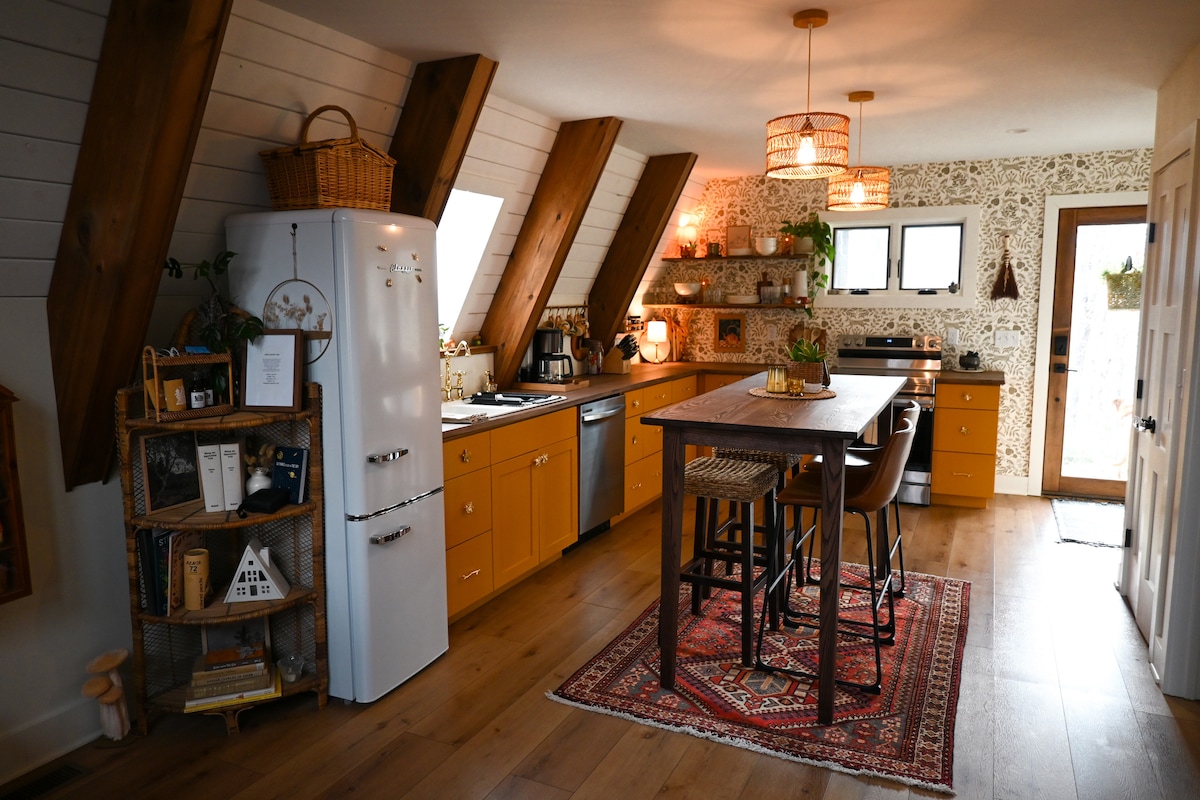 ***2020 #1 Airbnbjeva nastanitev z največjimi željami v Severni Karolini** * Sprehodite se po dobro osvetljeni poti do oaze v gozdu. Nihajni most vas pozdravlja v mirnem, prijetnem domu med drevesi, obdan z domorodnim lovorjem in obiljem trdega lesa. Poslušajte ptice med jutranjo kavo na terasi ali se sprostite v vroči kopeli spodaj. Dom se nahaja na 14 hektarjev. Stara trdnjava je 10 minut do Črne gore in 20 minut do Ashevilla.