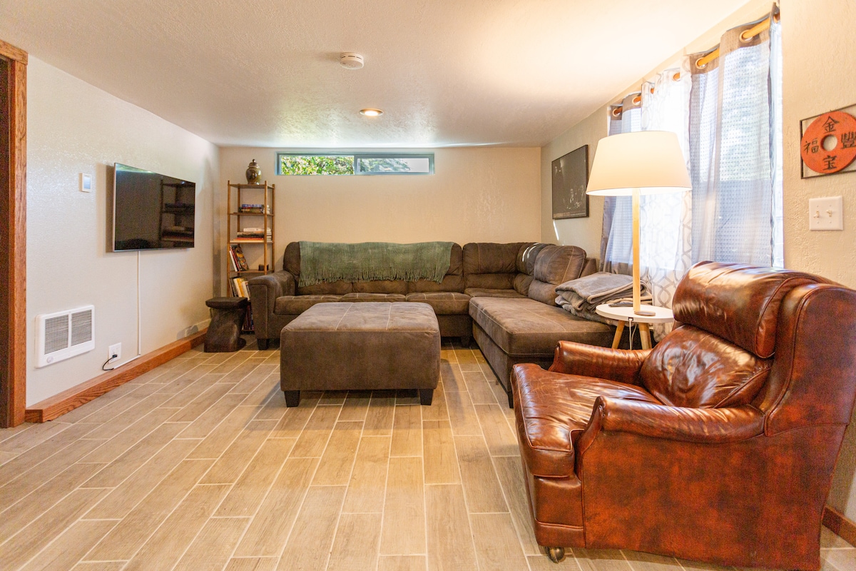 Pomirjujoč in tih prostor vas čaka na gozdnati destinaciji na Eugeneovem obzorju, ki se nahaja med krošnjami dreves, ki prikazujejo Oregon na zemljevid. Znani smo po tem, da prirejamo vrhunske športne in zabavne dogodke, ki so znani po živahni lokalni umetniški in glasbeni sceni ter uživamo v vrhunskem bivanju na prostem. Povzpnite se po pobočjih, širokih ulicah s parkiriščem, ki je na voljo, da najdete svež zrak, očiščen z mehkim dežjem. Opomba: vhod v apartma se nahaja na zadnji strani hiše, po stopnicah od parkirišča za goste.