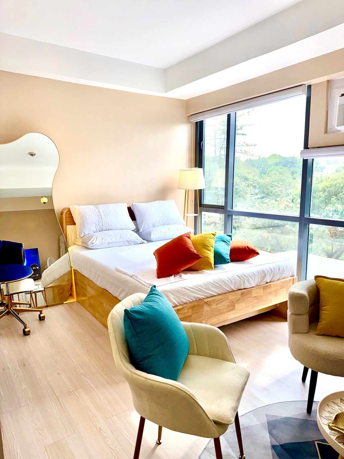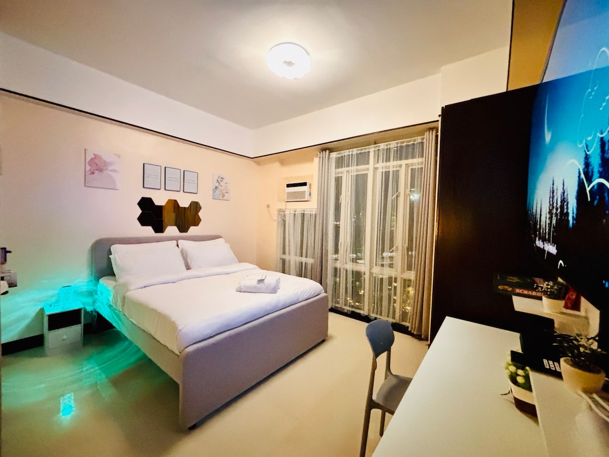Pobegnite v McKinley Hill v mestu Taguig City in se prepustite spokojnemu beneškemu oddihu. Doživite romantiko v nakupovalnem središču Venice Grand Canal Mall z očarljivimi kavarnami in restavracijami. Živahna vrhunska oprema BGC vas čaka le 10 minut vožnje. Naše 40 m² veliko zatočišče ima: 1. Več kot40 razkošne opreme 2. Hitri Wi-Fi (200 Mb/s) 3. Namenski delovni prostor 4. Prostorni balkon Idealno za: 1. Pari, ki iščejo romantiko 2. Strokovnjaki, ki potrebujejo priročnost 3. Popotniki, ki hrepenijo po udobju Rezervirajte zdaj in se sprostite v slogu.