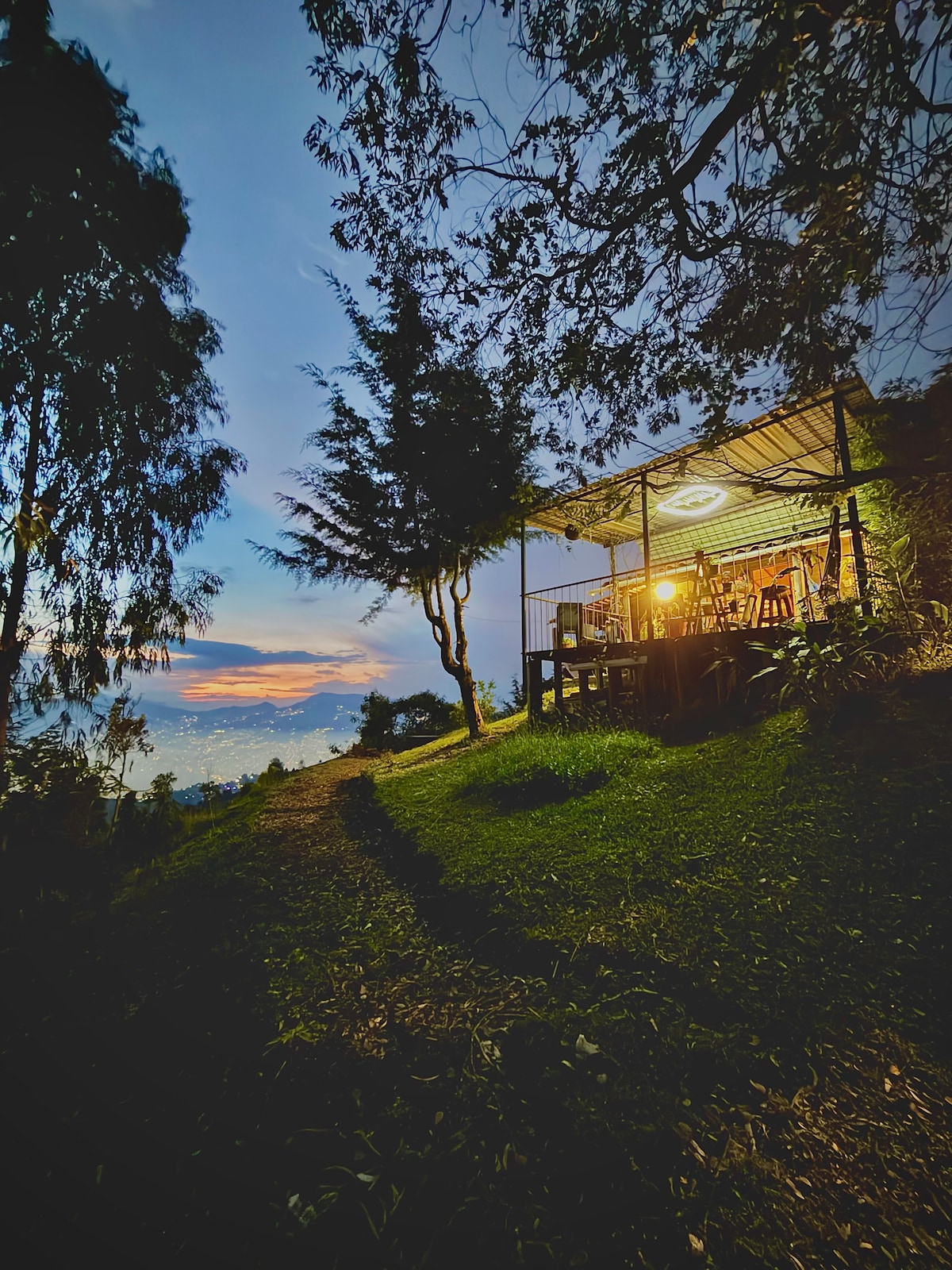 Perched on the edge of the mountains above Medellín, this spacious wooden cabin is a one-of-a-kind retreat with breathtaking views of both the city and the mountains surrounding the city. Perfect for families or groups, it offers total privacy, four bedrooms, two baths, and cozy indoor and outdoor spaces. Soak in the jacuzzi while the city lights sparkle, wake up above the clouds, and enjoy mornings with coffee on the deck. Fireplace, BBQ, garden, and bonfire space included.