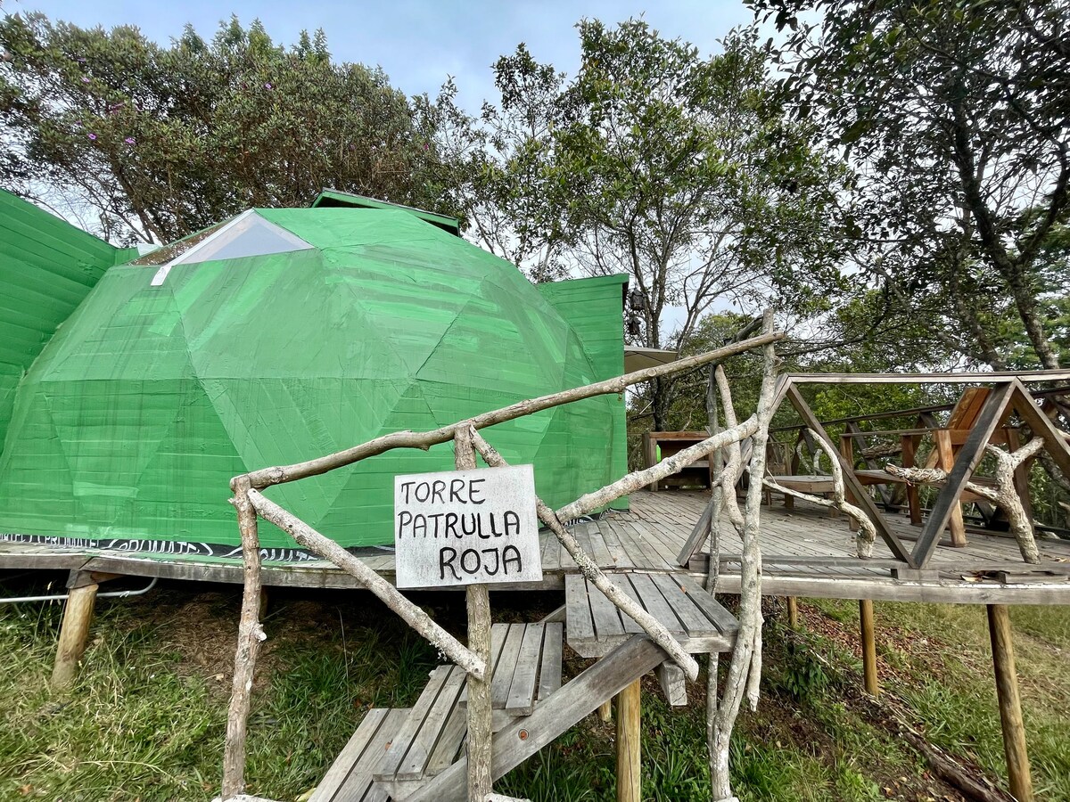 Hermoso Domo - Glamping ubicado junto a reserva natural. INCLUYE: Cama King• Cocina equipada• Baño privado• Agua Caliente• Jacuzzi privado• Sofá y escritorio• Deck con mobiliario• Televisión• WiFi 300 MBP• Fogata autoservicio• Asador-BBQ a gas• Parqueadero gratis. COMIDA PARA PREPARAR O DE RESTAURANTE, LICOR, MEDICINA Y CASI CUALUQIER COSA SE PUEDE PEDIR A DOMICILIO Y LO LLEVAN HASTA LA PUERTA DEL GLAMPING. RNT: 162437