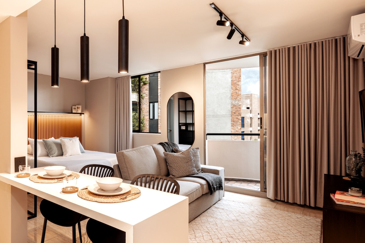 Sprostite se v tem elegantnem in sodobnem stanovanju v osrčju Manile – v soseski El Poblado, le nekaj minut od nakupovalnega središča Provenza, parka Parque Lleras in vrhunskih zdravstvenih centrov, kot so Clínica Medellín, Clínica Las Vegas in Clínica El Rosario. ✔Uživajte v veliki zakonski postelji z vrhunsko posteljnino, ✔Elegantna kopalnica z odprto prho, ✔Pametni televizor, ✔Visokohitrostni Wi-Fi ✔Popolnoma opremljena kuhinja. ✔ Zasebni balkon ✔Klimatska naprava ✔ Topla voda ✨Idealno za kratka bivanja, poslovna potovanja ali okrevanje.