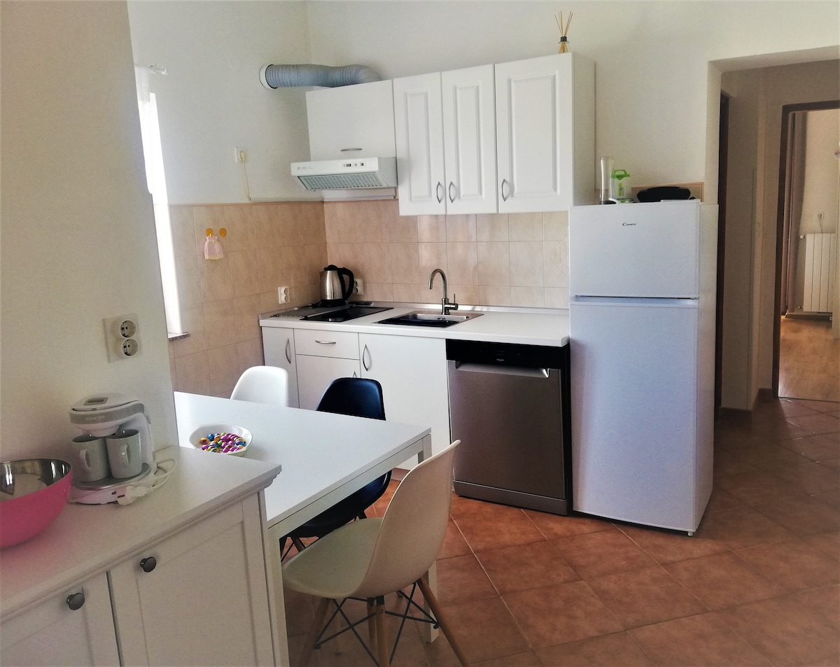 This charming apartment is suitable for younger guests, digital nomads and cycling fans as it offers a garage for bikes. It has a beautiful sea view with three balconies. It is located on the second floor (attic), so it is not suitable for guests with mobility problems due to the circular stairs. Distance from the seacoast is 250 m, and from the sandy beach 1000 (15 min walk). The nearest restaurant is 50 m away. Market "Stanić" , butcher, bakery 250 m, large markets: Lidl and Plodine 600 m.