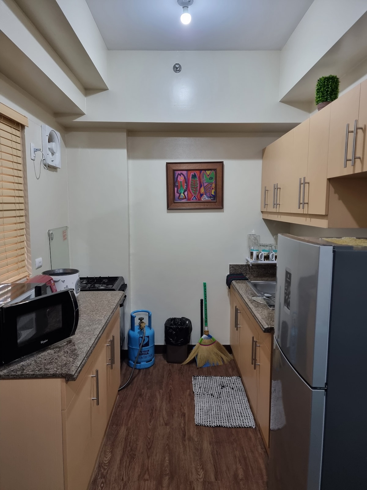 Sprostite se in doživite eleganco v tem enosobnem apartmaju. Enota je ljubeče zgrajena in okusno zasnovana za razkošen, a očarljiv občutek. Zbudite se in globoko vdihnite Baguio 's borov vonj, medtem ko srkate vročo kavo v hladnem jutranjem vremenu. Sprostite se, sprostite in bodite navdušeni nad razgledom na mesto na svojem osebnem balkonu. Nahaja se v eni od najboljših sosesk Baguio. Čeprav so trgovine in turistične točke oddaljene le pet do deset minut, je območje mirno in osamljeno.