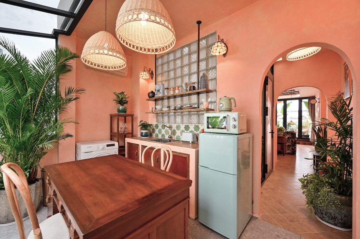 Prostorna, udobna nastanitev v zasebnem prenočišču, ki je povezana z naravo. Prostor za sprostitev ali karkoli, kar neguje vaš um in telo. Stanovanje je v 2. nadstropju in je opremljeno z veliko dnevno sobo, spalnico, zen sobo (lahko postane 2. spalnica, če rezervirate za 3–4 goste), kuhinjo, prostorno kopalnico z notranjo kadjo in zunanjim tušem ter velikim balkonom s pogledom na reko. OPOMBA: – Če rezervirate za 1–2 gosta: 1 postelja – Če rezervirate za 3–4 goste: 2 postelji – Če rezervirate za 1–2 gosta, vendar potrebujete 2 postelji: dodatna cena je 250.000 VND/noč