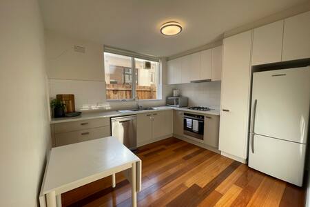 To zelo edinstveno dvosobno stanovanje v južnem Melbournu je odmaknjeno od vsega dogajanja, medtem ko ima še vedno zasebnost. Od jezera Albert Park je oddaljen 2 min hoje, do botaničnega vrta pa 10 minut hoje. Poleg tega omogoča enostaven dostop do mesta z bližnjim tramvajem. Pasji park za vogalom ali pa preizkusite igrišče za golf po 18.00, da vaš krzneni dojenček teče naokrog brez povodca. Preizkusite to osupljivo stanovanje in prostor zase. *V tem stanovanju bosta ena zakonska postelja in ena zakonska postelja.