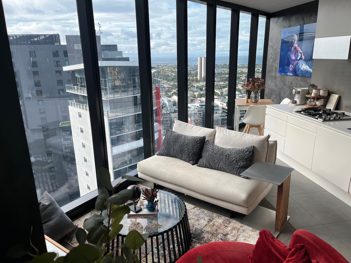 Razvajajte se z zasluženim oddihom na tej idealni lokaciji v bližini reke Yarra in kompleksa Crown Entertainment s panoramskim razgledom na Melbourne in zaliv! Sodobno zatočišče z vsem, kar potrebujete za udobje, da se boste počutili kot doma in uživali v brezskrbnem bivanju! ★Neomejen Wi-Fi in Netflix ★Sodobne naprave ★Oprema za posteljnino in kopalnico ★Pralni in sušilni stroj ★Študij/delovni prostor ★Klimatska naprava in ogrevanje Darilo za★ dobrodošlico ★Udobne zakonske postelje (Queen) ★Dostop do bazena, telovadnice in savne
