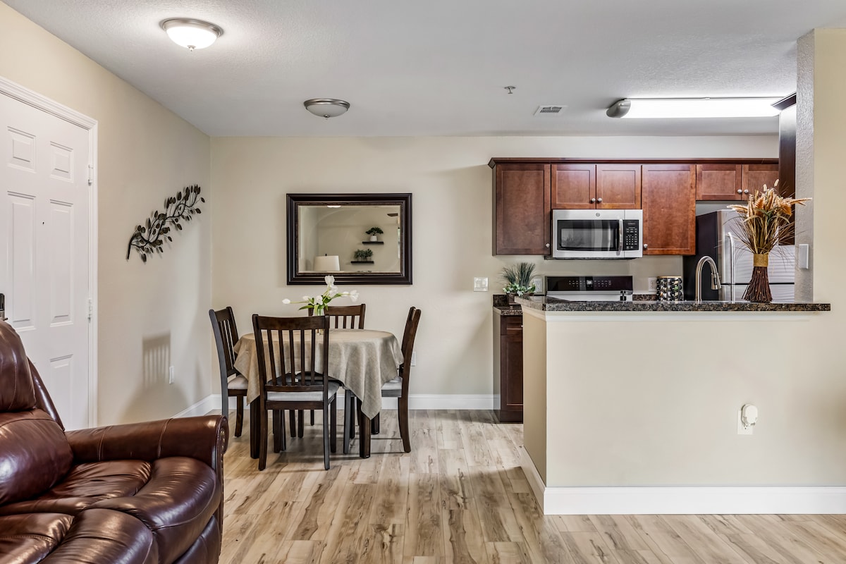 To zračno garsonjera je oddaljena manj kot minuto hoje od plaže in je opremljena z vzmetnico velikosti zakonske postelje (Queen). Studio je opremljen s pralnim/sušilnim strojem, pomivalnim strojem, kuhalno ploščo z 2 gorilnikoma in aparati iz nerjavnega jekla. Zunanji prostor vključuje pokrito teraso z mizo in stoli ter tlakovano skupno teraso. Stoli za plažo in pisane brisače za plažo so na voljo v vsaki enoti. 1 miljo od restavracij in barov v središču mesta Cocoa Beach. 1-urna vožnja do mednarodnega letališča Orlando in tematskih parkov.