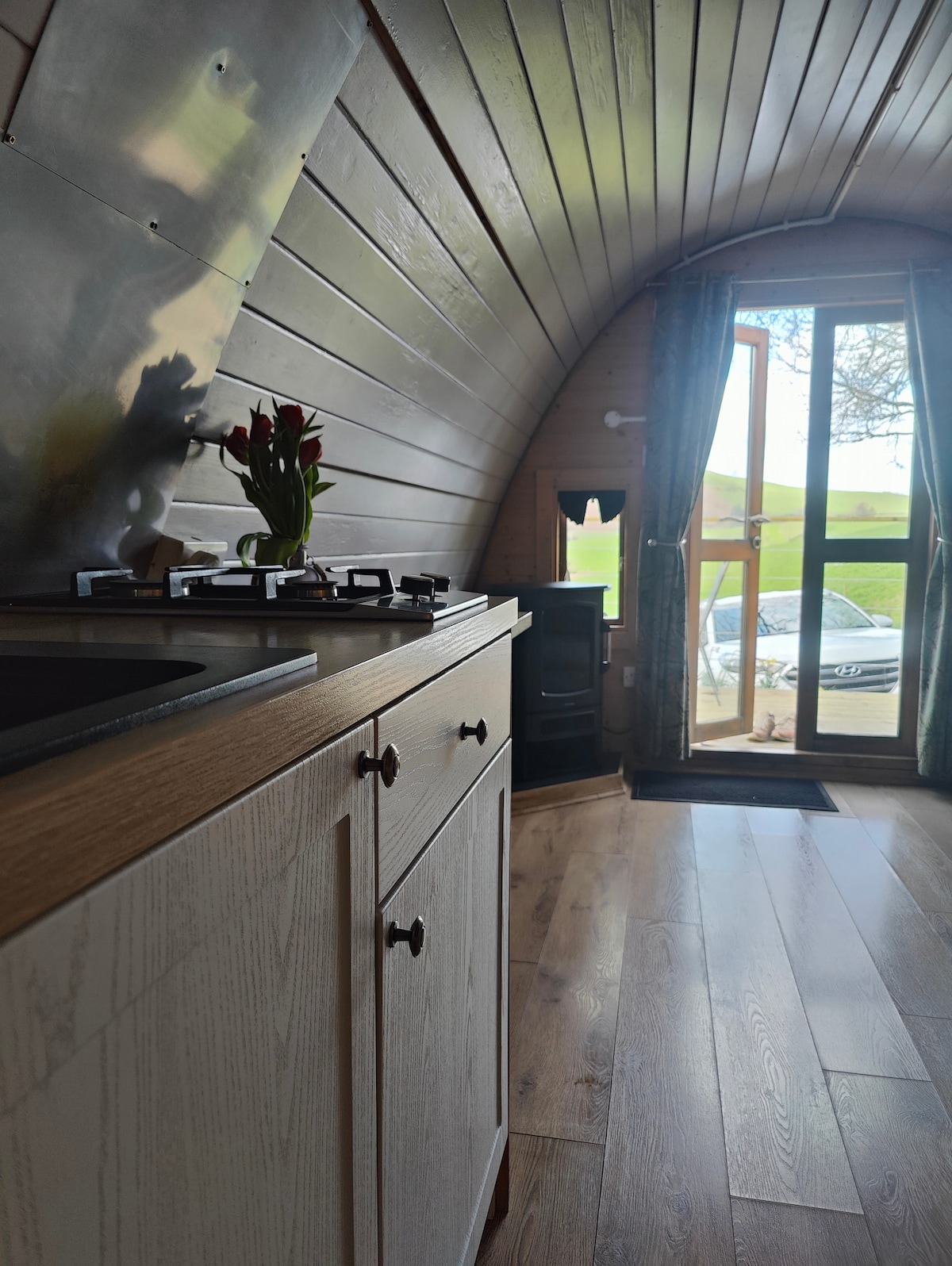 Edinstvena panoramska kupola, ki spi 2 odrasla. Dvojna postelja, gorilnik za hlode in čudovit razgled. Ko vstopite v svojo nenavadno kupolo, vas bo zamikalo, da bi se potopili v zakonsko posteljo in pojedli te razglede. Našli boste tudi udobne sedeže – idealno mesto za skodelico čaja. Preprosto, a učinkovito opremljen prostor krepi občutek, da je to zatočišče. Njegova oddaljena lokacija pomeni, da je kupola izklopljena. Člani kluba Greener Camping Club si oglejte druge podrobnosti spodaj.
