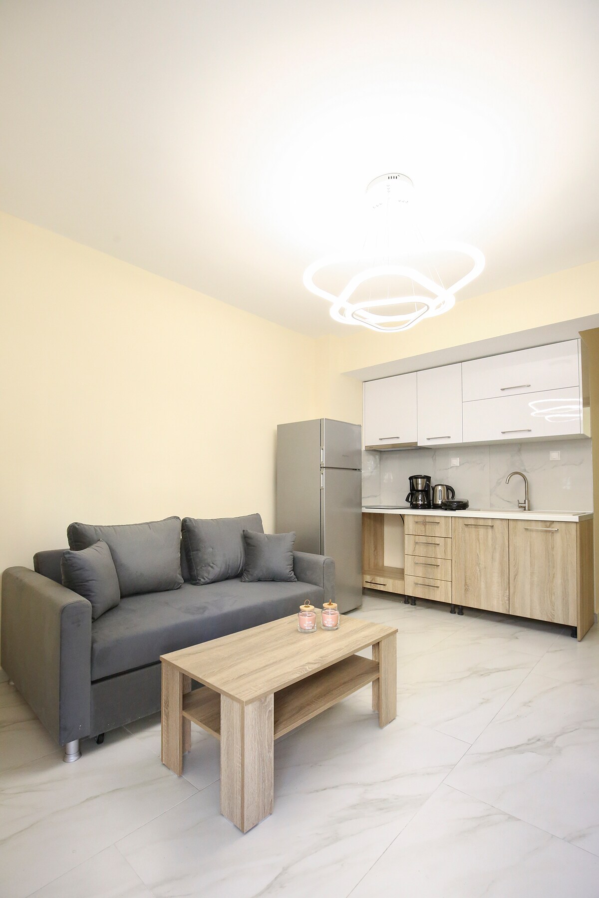 Elegantno, sončno stanovanje 2 km od središča mesta in 200 metrov stran od postaje podzemne železnice. Ena spalnica z zakonsko posteljo, dnevna soba s popolnoma opremljeno kuhinjo, udoben kavč, ki ga lahko spremenite v posteljo, eno kopalnico ,balkon s čudovitim razgledom in zasebno parkirno mesto. Stanovanje je popolnoma opremljeno za kratkotrajna in daljša bivanja