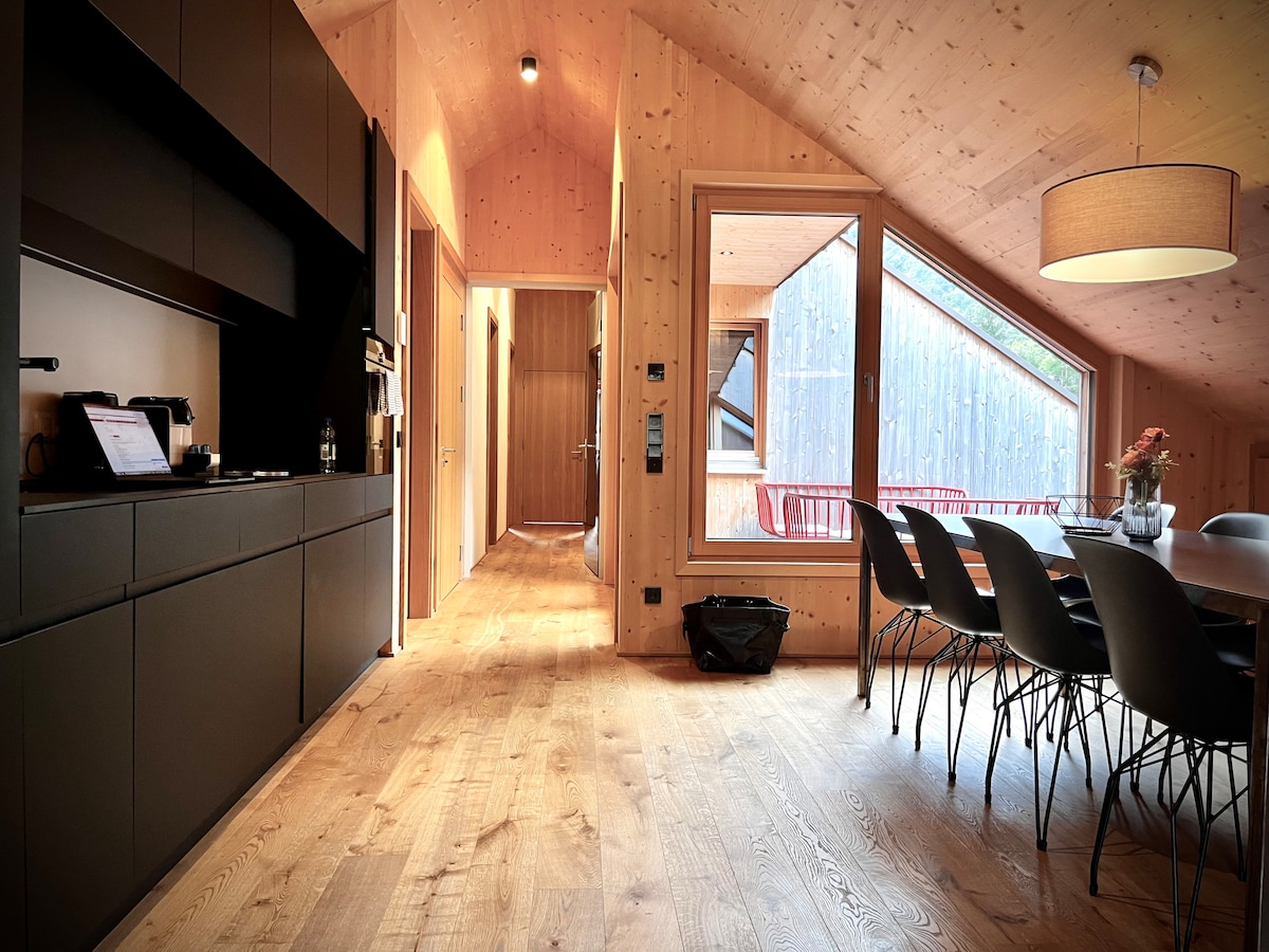 Willkommen im Herzen des Bregenzerwaldes! Unsere geräumige 109 m² große Ferienwohnung in Mellau bietet Ihnen den perfekten Rückzugsort für einen unvergesslichen Aufenthalt. Die Wohnung besticht durch vier geschmackvoll eingerichtete Schlafzimmer, ein makelloses Badezimmer, eine zusätzliche separate Dusche sowie ein separates WC. Der Wohnbereich beindruckt mit einer hochwertigen Kochzeile, die keine Wünsche offen lässt sowie einen gemütliche, großßzügigen Essbereich.
