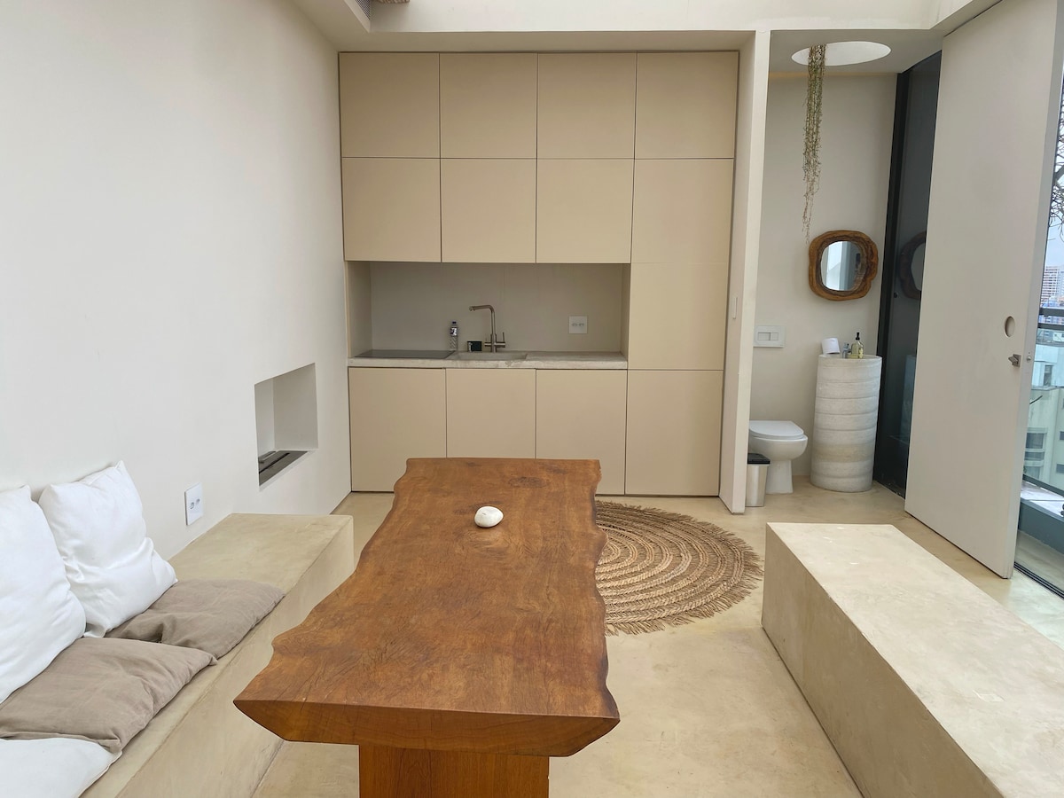 Studio 40011: 4 min od parka Allianz. Kompakten, sodoben, popoln in udoben studio v eni najbolj kulturnih regij São Paula. 📍 Obkroženo s kavarnami, restavracijami in predstavami. Tukaj mesto utripa ✨ Udobna postelja, pult, omara, klimatska naprava, TV in kuhinja, opremljena z aparatom za sendviče, cvrtnikom, aparatom za kavo, štedilnikom, hladilnikom. Zasebna 🚿 kopalnica in udobna razsvetljava. S tem vzdušjem »Želim ostati malo dlje« Idealno za uživanje, počitek ali delo. Rezervirajte zdaj!
