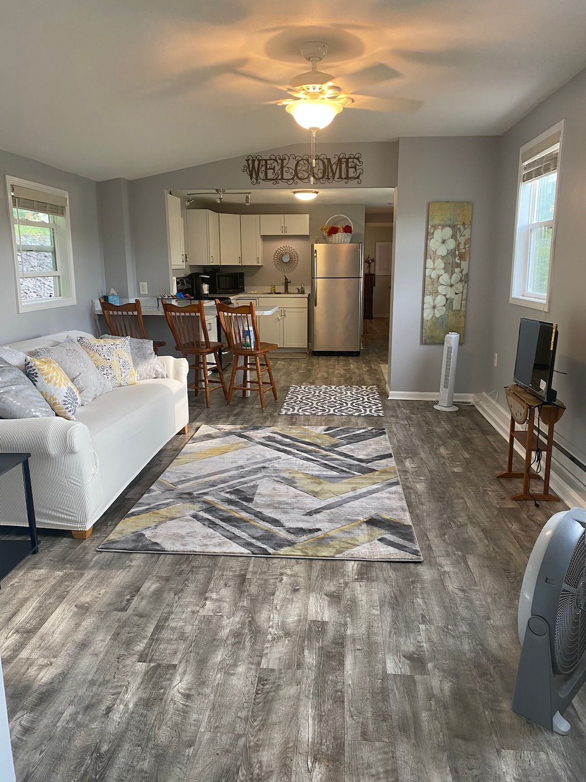 This recently renovated village apartment, with brand new bathroom, is a charming space located on the Seneca river. It is on the first floor & is centrally located in heart of the village of Baldwinsville steps from restaurants, coffee shops, & waterfront walking trails. This bright & airy waterfront space is under 20 minutes to downtown Syracuse, SU, Oswego, & the hospitals. It’s adjacent to Papermill Island -community docking nearby. New in-unit laundry. Free parking in driveway.