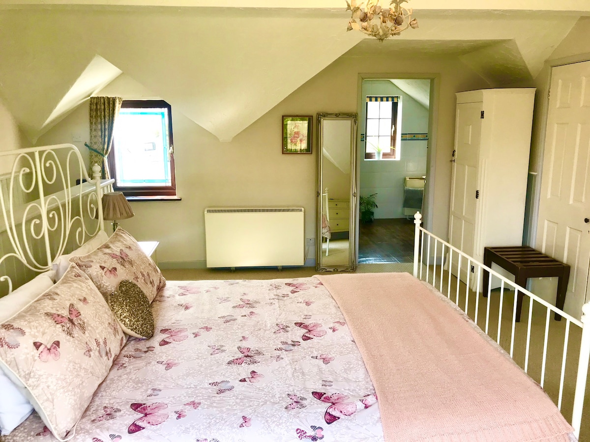 The Annex, en suit King size bedroom with garden view above and downstairs have your own living room with log burner. Juliette balkon v spalnici, ki gleda na vrt. Francoska dvojna vrata so odprta do terase in uživajte v pogledu na vrt. Zaprite oči in poslušajte ptičje pesmi ves dan. Ni zajtrka. Priskrbite samo čaj in kavo. Imamo hladilnik, mikrovalovno pečico, opekač kruha in cvrtnik za vodo. Zasebni vhod. 5 minut hoje do puba, 5 minut vožnje do plaže.