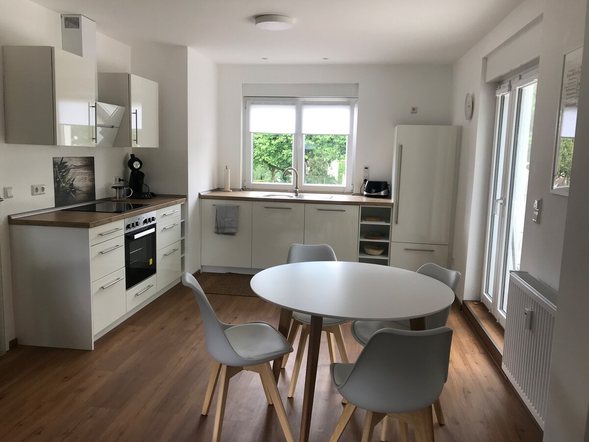 Grosszügige Wohnung im Erdgeschoss eines Zweifamilienhauses. Es gibt einen eigenen Eingang, grosse Diele, Schlafzimmer mit Doppelbett und Wohnzimmer mit TV. Die Küche ist mit Kaffeemasch., Wasserkocher, Mikrowelle, Herd, Backofen, Spülmaschine, Geschirr u. Kühlschrank ausgestattet, extra Esszimmer,Bad mit Dusche, Handtücher, separates WC. Nur für 2 Personen, nicht für Kinder geeignet. Kein Besuch erlaubt. Keine Gartennutzung.