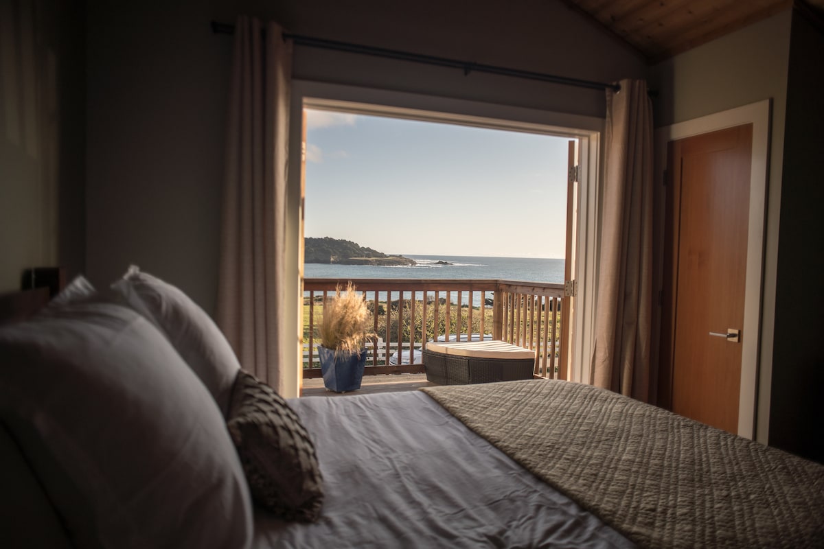 Obmorska hiška na vrhu pečine z osupljivim razgledom na Tihi ocean in obalo Mendocina. Imamo svoje plimne bazene. Zasebno, vendar priročno za središče mesta Fort Bragg. Samo 8 km od Mendocina. Spite ob mrzlih valovih v naši sončni in mirni hiši. Wi-Fi, kuhinja in vse naprave. Prenovljena kuhinja in kopalnica. Čudoviti sončni zahod in čudovito opazovanje zvezd! Cene vključujejo takse za bivanje. Lahko rezervirate z »Hišo za goste s pogledom na ocean z dostopom do obale« za večje skupine.