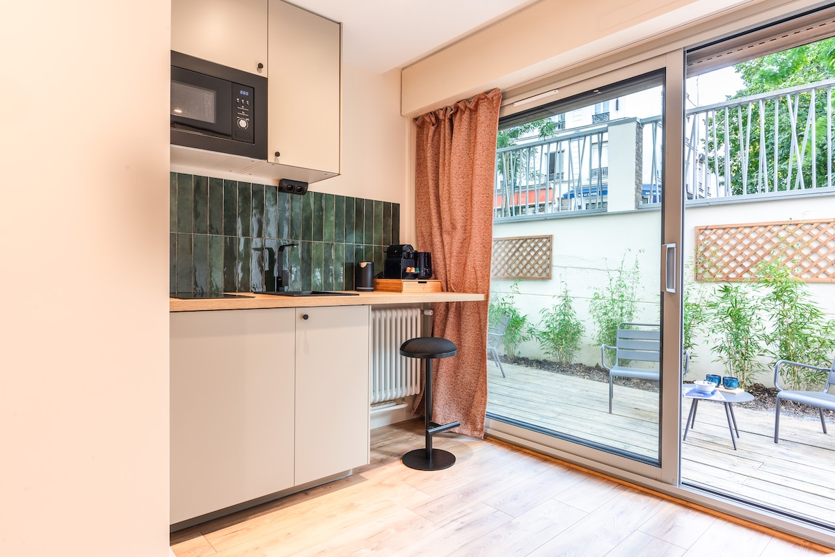 Dobrodošli v hedonističnem Parizu! - Elegantna garsonjera za 2 gosta v soseski Maison Menilmontant - Kopalnica s prho in zasebnim straniščem - Zasebna terasa - Kuhinja s hladilnikom, mikrovalovno pečico, štedilnikom - Zakonska postelja (Queen) s 5 zvezdicami - Lepa soseska z veliko trgovinami - Zelo tiha in zavarovana stavba - V bližini je veliko trgovin / restavracij. - TV / hitra internetna povezava Wi-Fi - V celoti urejeno in prenovljeno s strani arhitekta