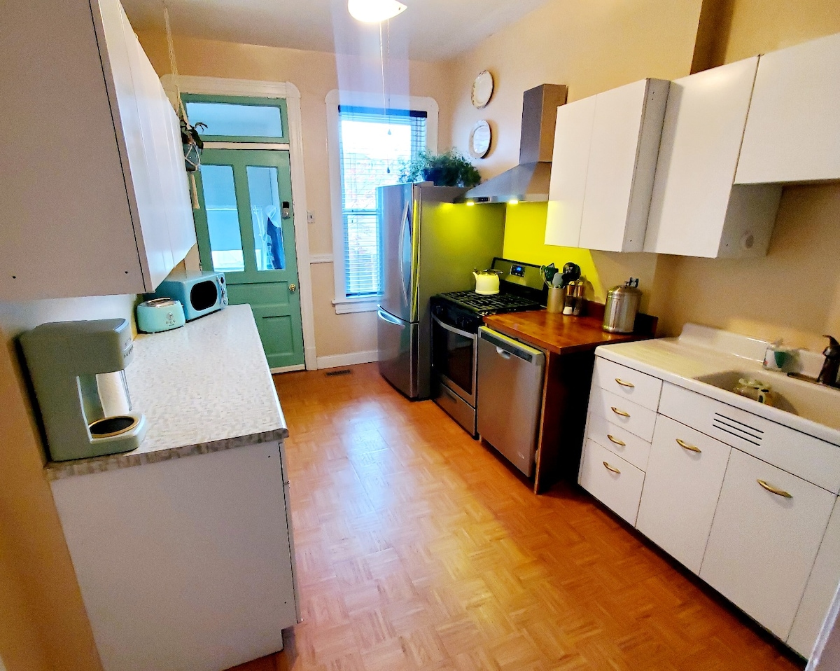 Private top-floor guest suite in an 1890s mansion at the historic Lindell Boulevard entrance to Forest Park, with direct park views from the suite. The suite includes three private bedrooms, a spacious family room with two convertible couches, and multiple TVs. A compact, fully functional kitchenette features a countertop Breville convection oven, Nespresso machine, coffee maker, full-size dishwasher, and small refrigerator. Steps from the Chase Park Plaza at the gateway to the Central West End.