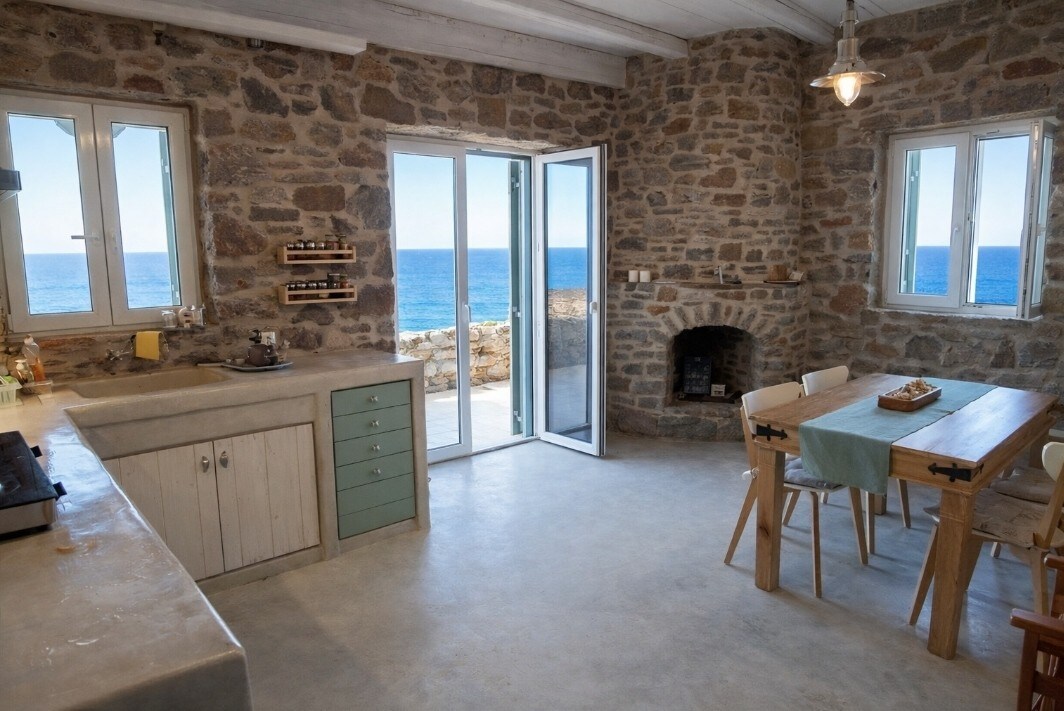 Tradicionalna kamnita hiša, dobesedno zgrajena na pesku, le nekaj metrov od morske vode. Spite in se zbudite ob čistem zvoku mehkih valov in ptic. Za en teden v tej hiši se boste počutili, kot da ste počivali cel mesec. Nekateri gostje pravijo, da fotografije ne upravičujejo bivališča. Veliko lepše je biti tukaj v živo.