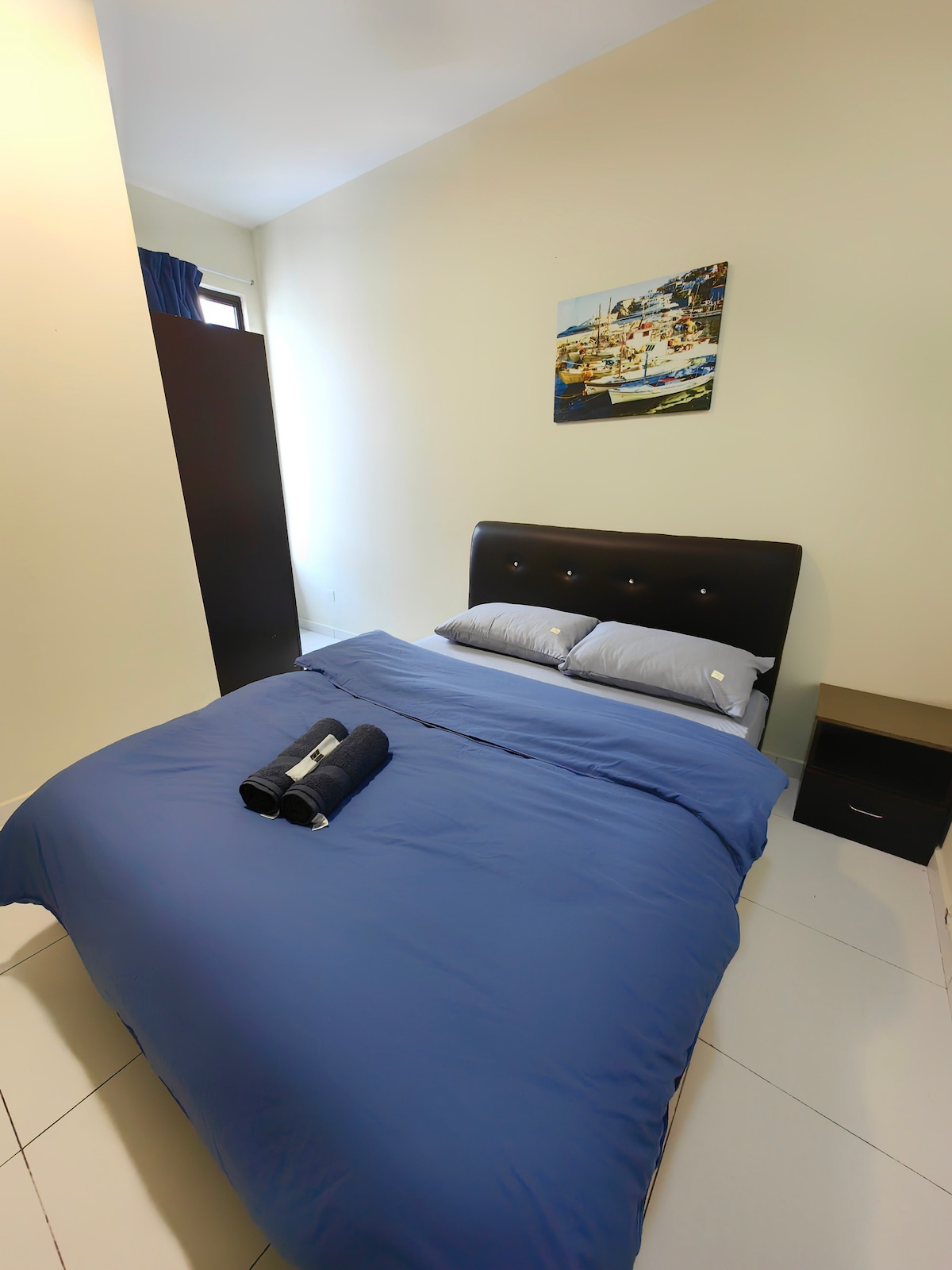 Koliko oseb lahko biva tukaj: Stanovanje lahko sprejme 4 osebe in je še vedno udobno za 6 oseb. Nahaja se v osrčju mesta Melaka in je le 3 km stran od zgodovinske stavbe A'Famosa in Studthuyjeve stavbe. Objekti: zagotovite BREZPLAČNO parkirišče za 1 avtomobil na 2. stopnji. Drugi lahko parkirajo v pritličju. Seznam opreme, ki je na voljo v hiši: Elegantno stanovanje ima tudi 2 zakonski postelji in 1 zložljiv raztegljiv kavč, 1 dodaten toto, 60-palčno LED android TV, WI-FI ITD.