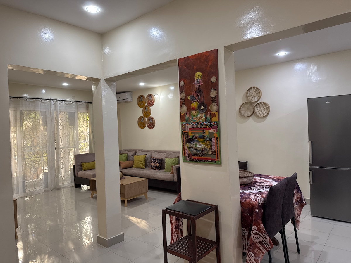 Bienvenue à Bô Séjour votre appartement cosy et climatisé, situé à la cité Africa, juste à 5 minutes de la plage de Ouakam. Niché dans un quartier résidentiel rare de la capitale calme et sécurisé. Cet appartement soigneusement décoré vous offre la chaleur de l’hospitalité sénégalaise avec le confort moderne. Proche du Monument de la Renaissance et du Phare des Mamelles, idéal pour couples, voyageurs et nomades digitaux en quête de style, calme et connexion.