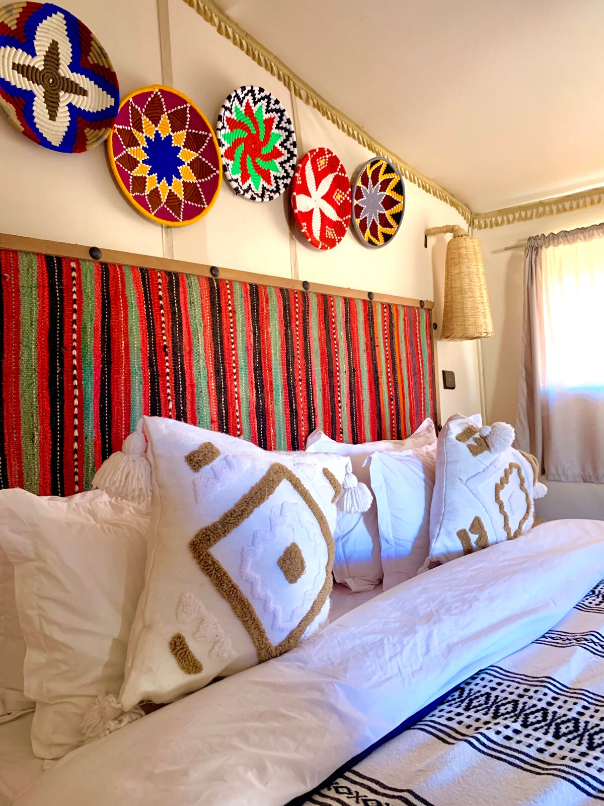 Naš kamp, ki se nahaja sredi sipin, ima 10 prostornih šotorov, od katerih je vsak opremljen s stranišči in zasebno prho. Vsak šotor ima od znotraj in od zunaj vrata, ki jih je mogoče zakleniti, naša storitev pa brezplačno nudi ključavnico. V teh 26 kvadratnih metrih boste našli veliko zakonsko posteljo in enojno posteljo, ki sta opremljeni z visokokakovostno posteljnino, vključno z blazinami, rjuhami in brisačami.