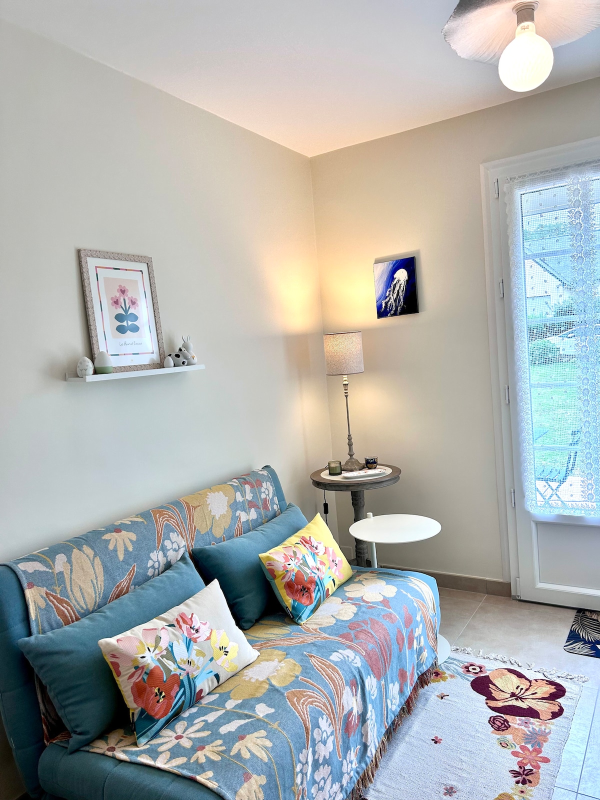 Nekaj minut od morja in v zelenem okolju, udoben studio, kjer boste imeli mirno in zelo prijetno bivanje, lahko pa boste brez skrbi uživali v ogrevanem notranjem bazenu in spa centru. Nahaja se v slepi ulici, brez sosedov, Do središča mesta se lahko sprehodite po poteh vzdolž obale. Rezervirajte WELLNESS in ESTETSKO storitev s Cécile Bien-être et Beauté, masažami in nego obraza.