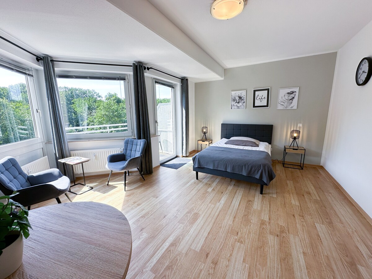 Sodobno, na novo prenovljeno stanovanje, ki se nahaja le nekaj minut od glavne železniške postaje v Essnu. Idealen kraj za popotnike in poslovneže – z neposrednim dostopom do železnice, podzemne železnice in avtobusa. Kavarne, restavracije in trgovine so tik za vogalom. Svetlo, udobno vzdušje, balkon s pogledom na mesto in vse, kar potrebujete za udobno bivanje. Idealno za kratka potovanja ali poslovna potovanja.