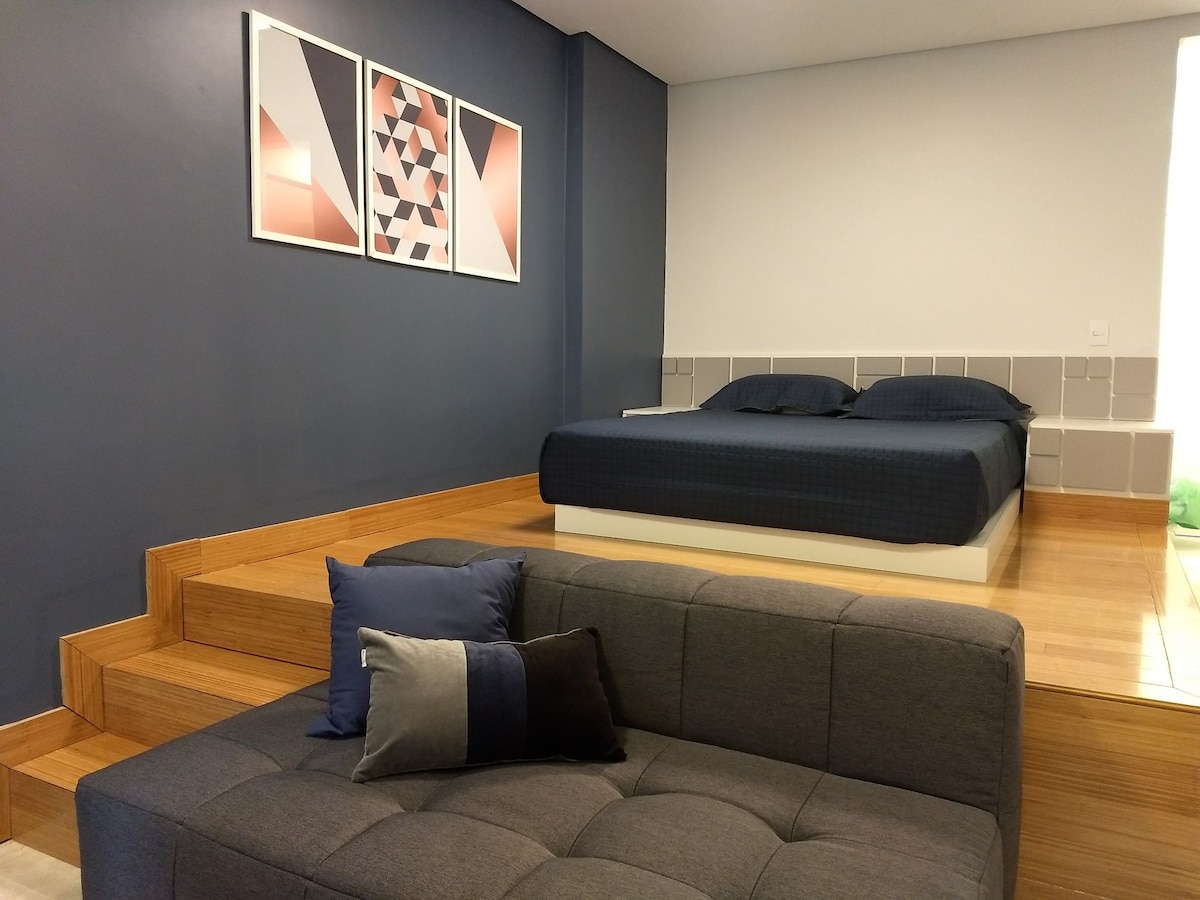 Estúdio espaçoso com muito design, arquitetura e a melhor vista de São Paulo. Loft completo! Com cama queen, closet, ar condicionado silencioso, cozinha completa, home office, WI-FI, TV 55” e uma belíssima banheira de imersão, de onde pode apreciar o seu drink preferido e curtir uma vista apaixonante. São Paulo toda estará há poucos minutos de você. Acesse o metrô andando apenas 200m. Reserve com tranquilidade! Proporcionaremos uma excelente hospedagem e uma ótima experiência!