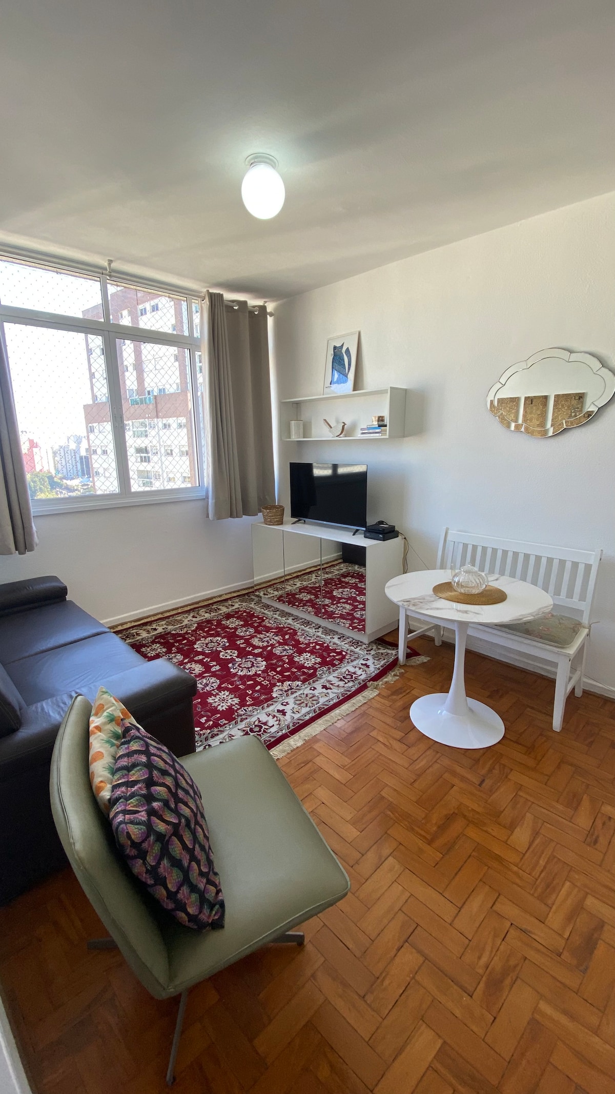 89 m2, 7. nadstropje, raztegljiv kavč v večnamenski sobi in 1 zakonska postelja v spalnici, 24-urni hišni upravitelj, Wi-Fi 400 Vivo Fiber. Odlična lokacija in blizu vsega, 8 minut hoje od podzemne železnice Higienópolis. Lounge, ameriška kuhinja, odprta od vetra do vetra in osvetljena. Kopalnica s prho in plinskim ogrevanjem. Popolnoma opremljeno, posteljnina in kopalna kad itd. Blizu Mackenzie College in nakupovalnega središča Higienópolis. Kajenje je prepovedano. Ni primerno za otroke, ni varnostne mreže. Ni garaže. Vse preberite tukaj.