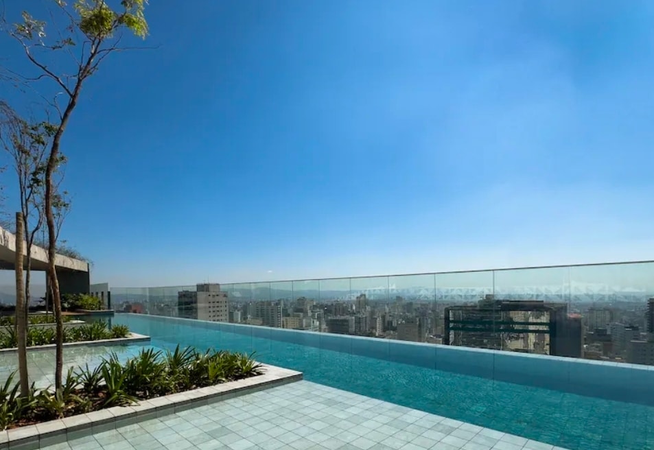 Balkon, bazen in savna 8 min hoje do Av. Paulista