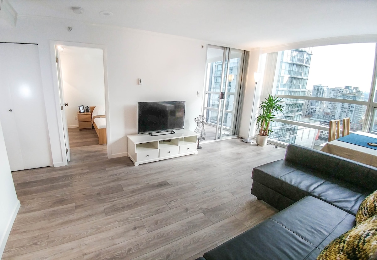 Uživajte v doživetju Vancouvra v tem bivališču v središču mesta, le nekaj korakov stran od javnega prevoza in v bližini BC Place in Rogers Arene. V celoti opremljena z zakonsko posteljo (Queen), raztegljivim kavčem, pametno televizijo, pomivalnim strojem, pralnim in sušilnim strojem ter popolnoma opremljeno kuhinjo s sodobnimi napravami. Na voljo je 1 brezplačno podzemno parkirišče. Stavba je imela skupno telovadnico, notranji bazen in savno. Brezplačno.