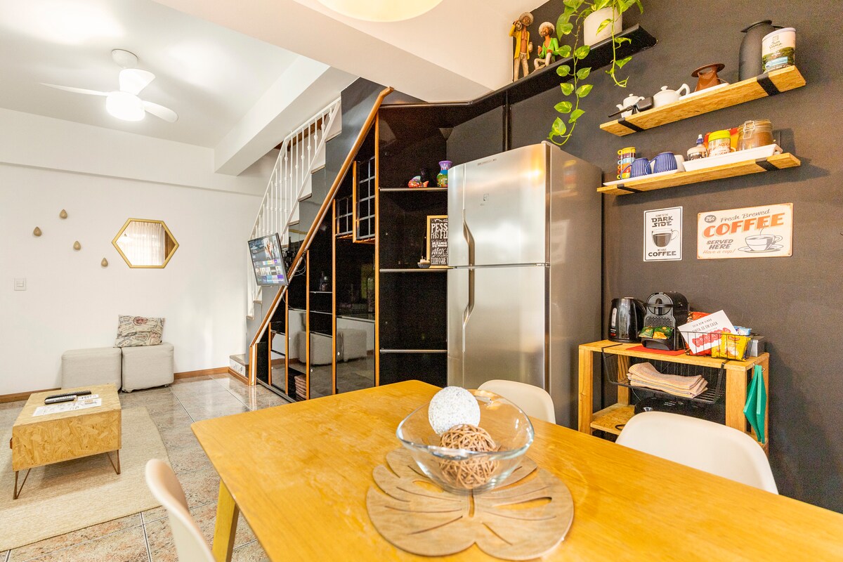 Vaš oddih v Campinasu! Popolno za počitek, delo ali uživanje v najboljšem, kar ponuja notranjost São Paula. To dvonadstropno stanovanje v velikosti 75 m² se nahaja na odlični lokaciji v osrčju gastronomske in zabavne četrti mesta. Popolnoma opremljena kuhinja 🍳 – primerna za vsakega kuharja! 🏞️ V bližini trgovin, lekarn, fitnesov, trgov in parkov. ✈️ 30 minut od letališča Viracopos in 15 minut od avtobusne postaje. 🏙️ Enostaven dostop do glavnih mestnih sosesk. 🚗 Na voljo je garaža – vprašajte pred rezervacijo!