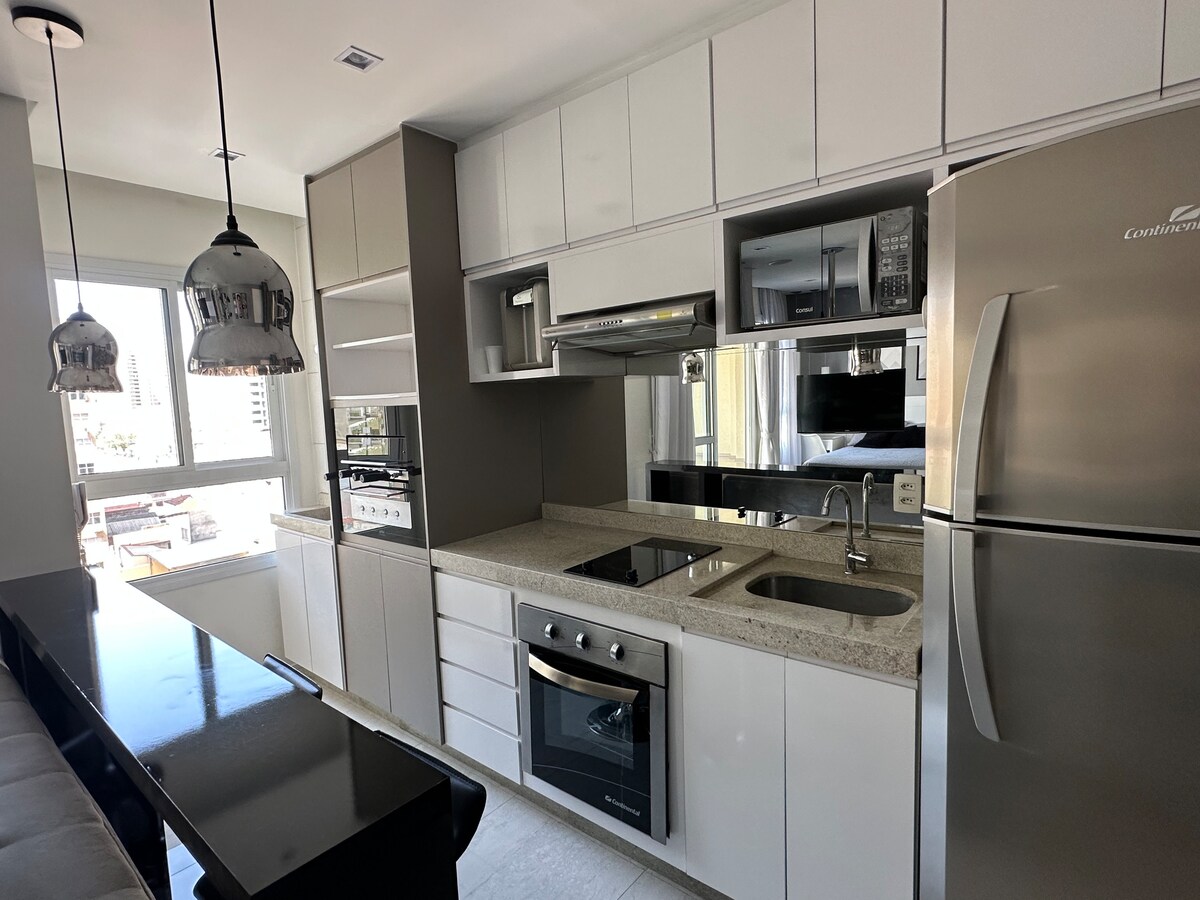 Sodobno predelano stanovanje v središču Campinasa, kot nalašč za delo, študij ali prosti čas. Popoln in udoben, s klimatsko napravo, 1 parkirnim mestom, Wi-Fi-jem, opremljeno kuhinjo, pralnim in sušilnim strojem, televizijo, posteljnino in kadjo. Le nekaj korakov stran od kavarn, restavracij, lekarn in še marsikaj drugega. Stanovanje s 24-urnim hišnim upraviteljem. Idealno za 2 osebi, z možnostjo za 3 osebe. Udobno se namestite in počutite kot doma.