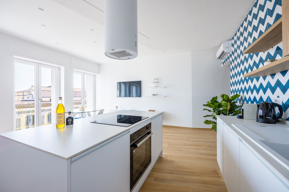 Enjoy a unique experience in the Magnificent Suite with Balcony View Vesuvius+complimentary breakfast and wine!With this accommodation in the center of Naples, your family will be close to everything!Mazzocchi's strategic location in the city center offers easy access to major attractions,transportation,and services.The house is comfortable and bright,with 4 beds,a equipped kitchen,air conditioning/heating,a washing machine,elevator. Free street parking and a H24 secured garage.Transfers/Tours