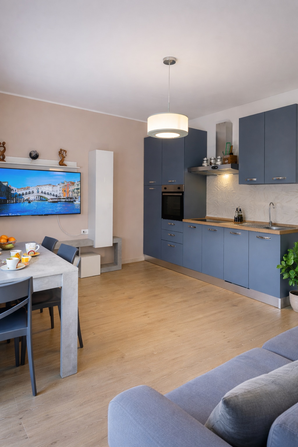Stanovanje v bližini vse opreme. ✔ Avtobus do Benetk 8 min Brezplačno ✔ parkiranje v bližini ali plačljivo parkiranje ob vznožju namestitve (brezplačno ponoči) ✔ Restavracije, picerije in supermarketi pod hišo ✔ Pralnica Stanovanje je opremljeno z vsem: ✔ Klimatske naprave ✔ TV LED HD 50" ✔ Odličen WI-FI Čajna kuhinja je opremljena z: ✔ pečica ✔ hladilnik ✔ zamrzovalnik ✔ mikrovalovna pečica ✔ aparat za kavo ✔ kotliček ✔ posodo in kuhinjske pripomočke. V kopalnici je tudi pralni stroj.