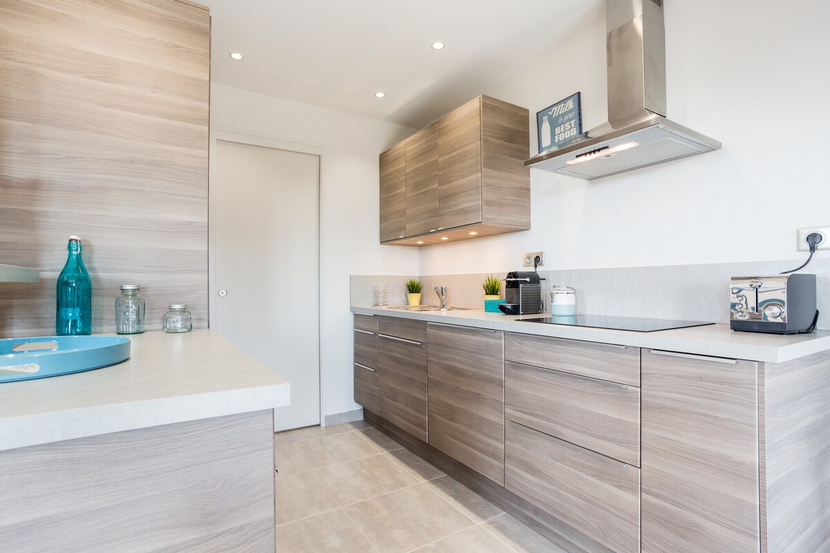 Pobegnite na osupljivo modro obalo in doživite Provanso v garsonjeri, ki so jo skrbno zasnovali lastniki arhitektov. Zbudite se ob osupljivem razgledu na hrib in morje z vaše zasebne terase in uživajte v vsem sodobnem udobju. Sprehodite se do peščene plaže in raziščite zalive z brezplačnim morskim kajakom. Priročno je oddaljen 10 minut od lokalne železniške postaje in 25 minut od letališča Marseille z brezplačnim parkiranjem. Na modri obali Provanse vas čaka nepozabna pustolovščina!